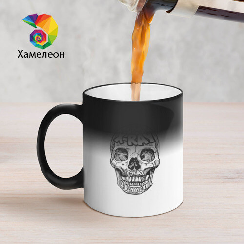 Кружка-сюрприз: пока в ней холодная вода, она будет оставаться однотонной, а когда нальете горячую — проявится принт. Принт начинает проявляться буквально через 10 секунд, в течение минуты он будет виден полностью. Когда остынет, кружка вернется к изначальному цвету.