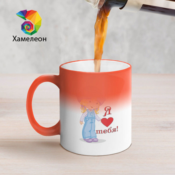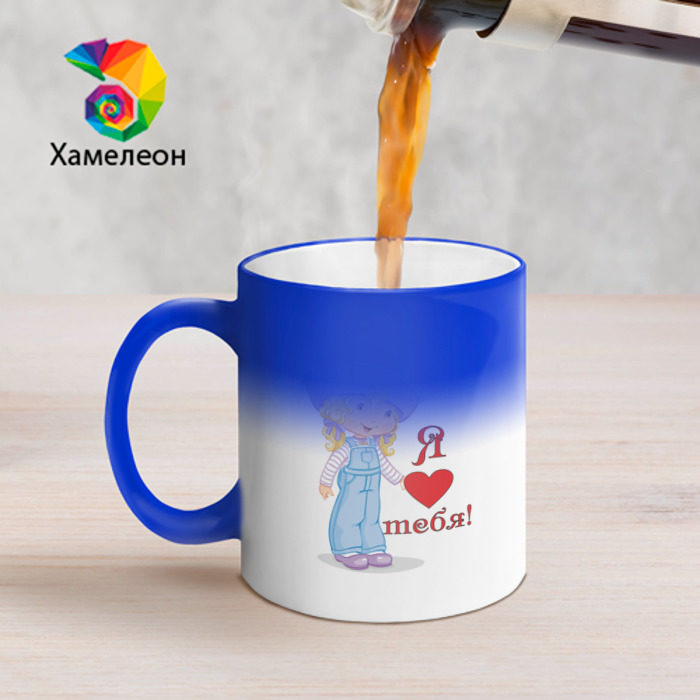Кружка-сюрприз: пока в ней холодная вода, она будет оставаться однотонной, а когда нальете горячую — проявится принт. Принт начинает проявляться буквально через 10 секунд, в течение минуты он будет виден полностью. Когда остынет, кружка вернется к изначальному цвету.
