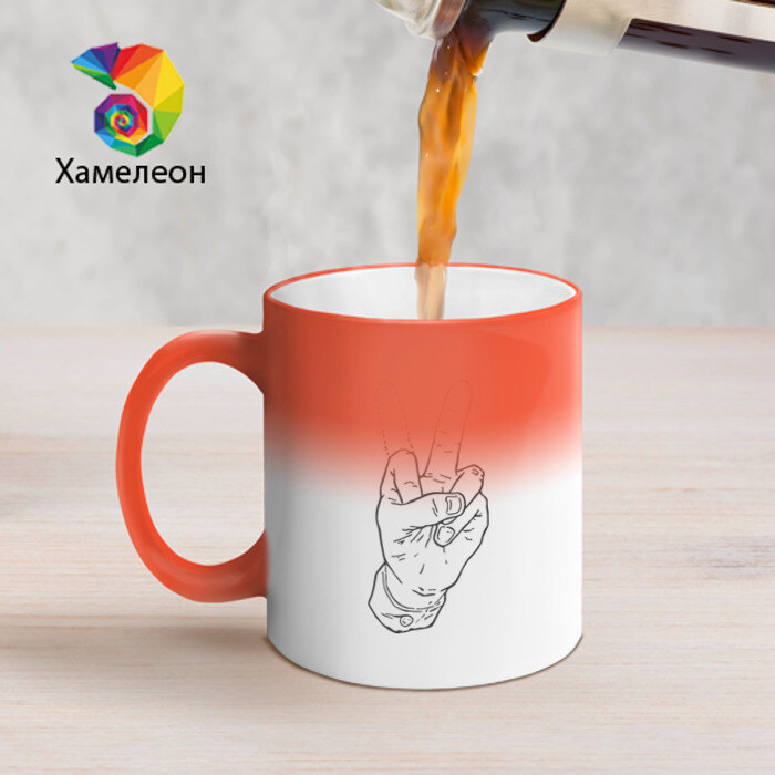 Кружка-сюрприз: пока в ней холодная вода, она будет оставаться однотонной, а когда нальете горячую — проявится принт. Принт начинает проявляться буквально через 10 секунд, в течение минуты он будет виден полностью. Когда остынет, кружка вернется к изначальному цвету.