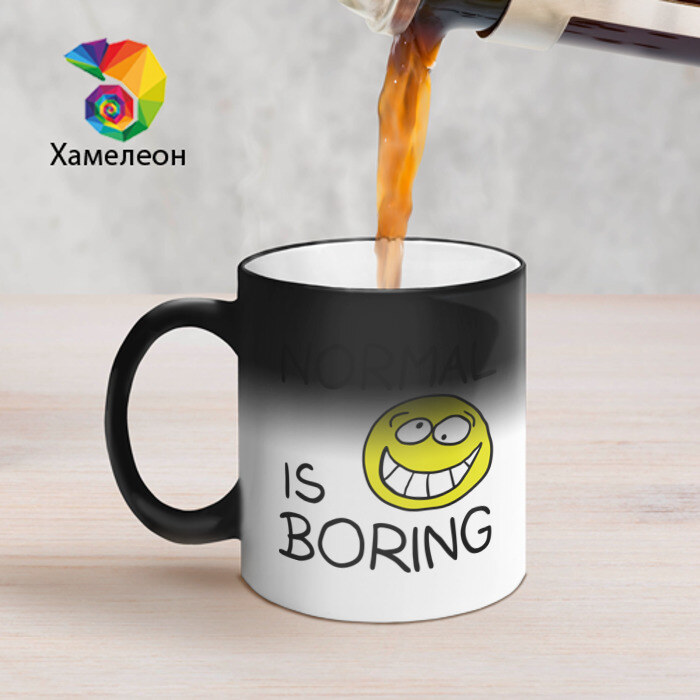 Кружка хамелеон с принтом Normal is boring (Обыденность это скучно)