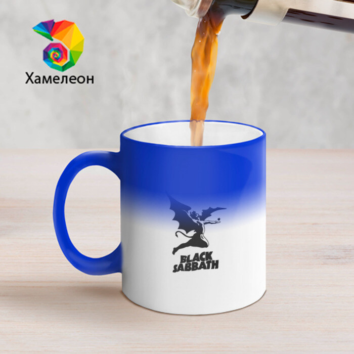 Кружка-сюрприз: пока в ней холодная вода, она будет оставаться однотонной, а когда нальете горячую — проявится принт. Принт начинает проявляться буквально через 10 секунд, в течение минуты он будет виден полностью. Когда остынет, кружка вернется к изначальному цвету.