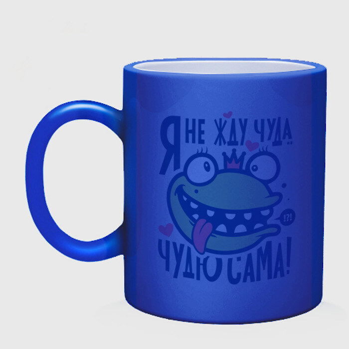 Кружка-сюрприз: пока в ней холодная вода, она будет оставаться однотонной, а когда нальете горячую — проявится принт. Принт начинает проявляться буквально через 10 секунд, в течение минуты он будет виден полностью. Когда остынет, кружка вернется к изначальному цвету.