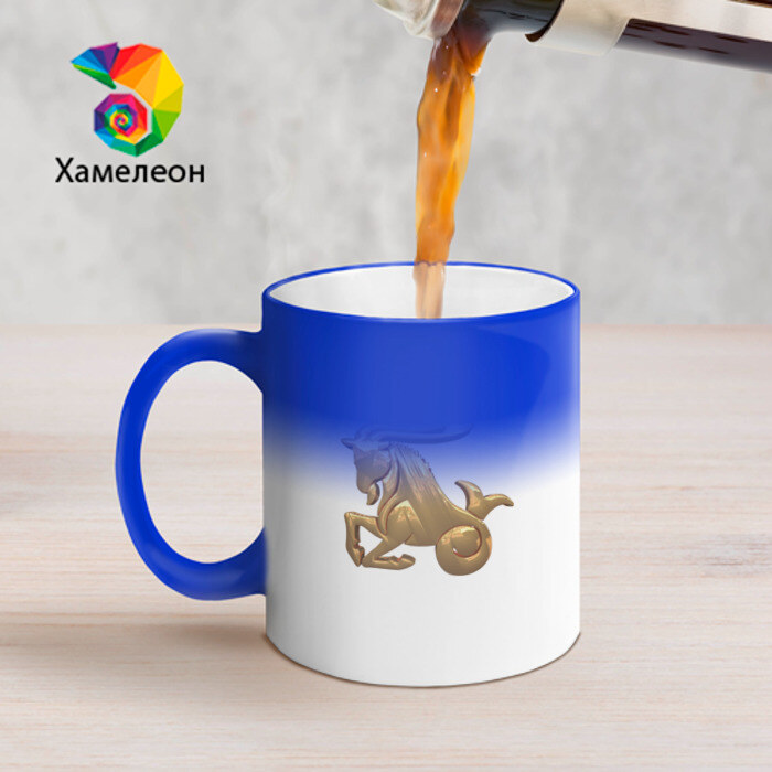 Кружка-сюрприз: пока в ней холодная вода, она будет оставаться однотонной, а когда нальете горячую — проявится принт. Принт начинает проявляться буквально через 10 секунд, в течение минуты он будет виден полностью. Когда остынет, кружка вернется к изначальному цвету.