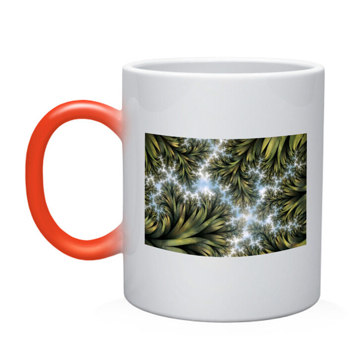 Кружка хамелеон с принтом Зеленые листья