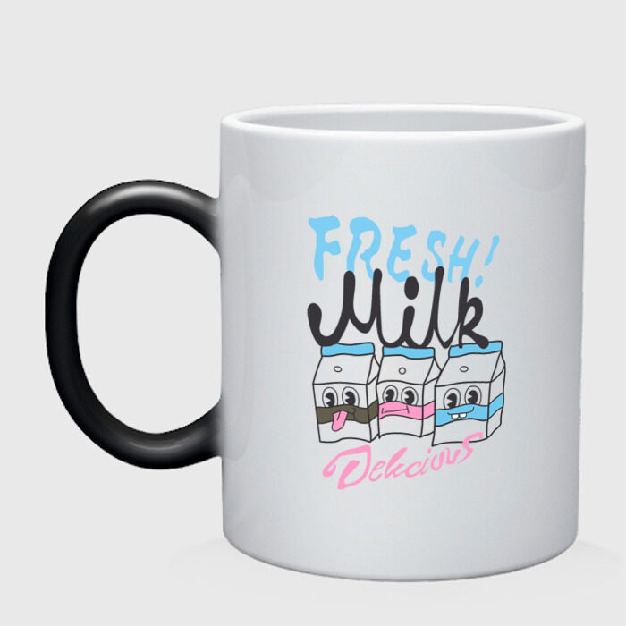 Кружка-сюрприз: пока в ней холодная вода, она будет оставаться однотонной, а когда нальете горячую — проявится принт. Принт начинает проявляться буквально через 10 секунд, в течение минуты он будет виден полностью. Когда остынет, кружка вернется к изначальному цвету.