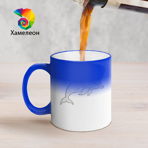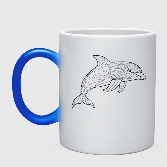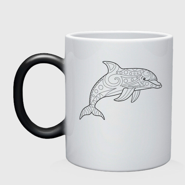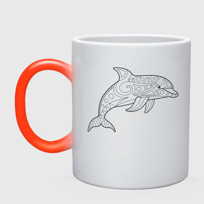 Кружка хамелеон с принтом Дельфин линейный с узорами