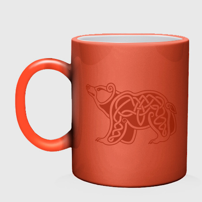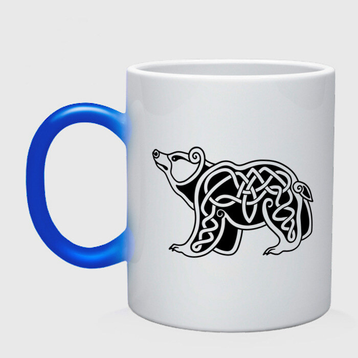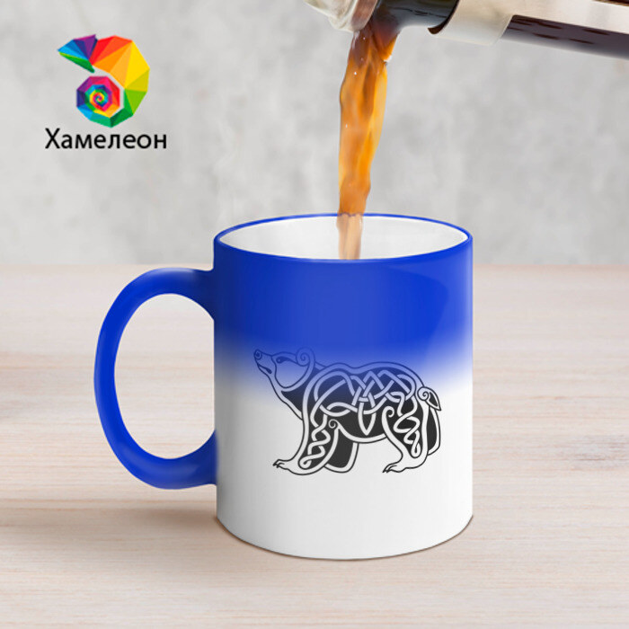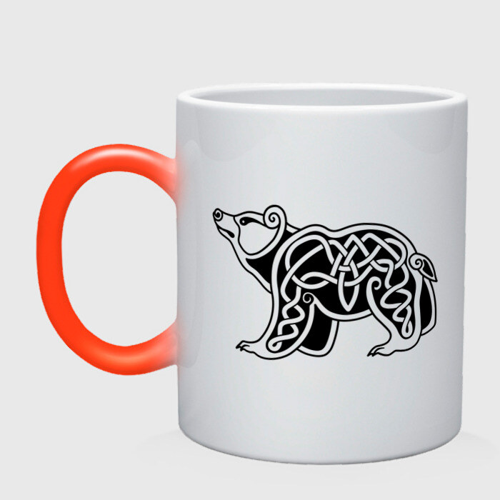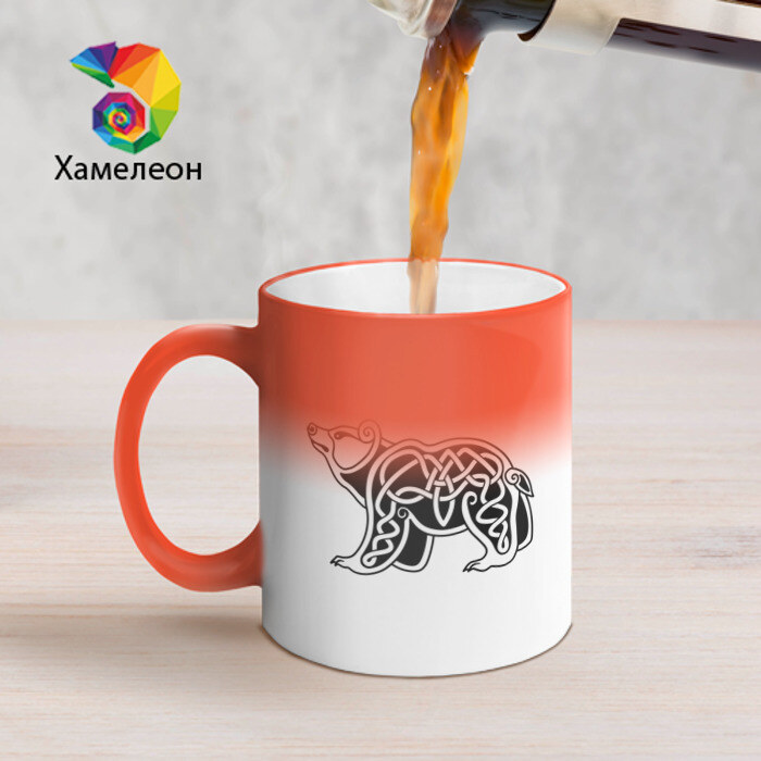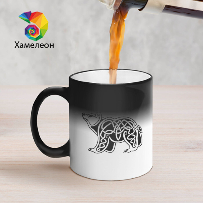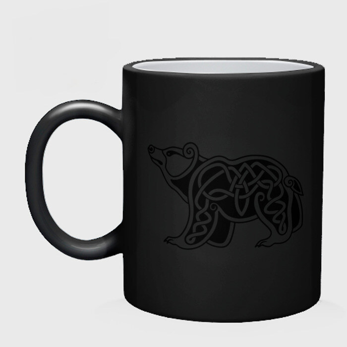 Кружка хамелеон с принтом Скандинавский медведь чёрный