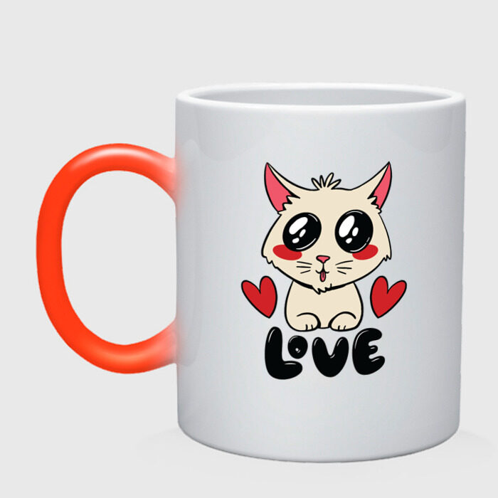 Кружка хамелеон с принтом Котик День Святого Валентина