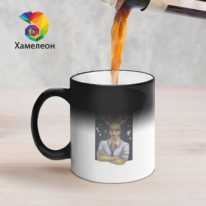 Кружка-сюрприз: пока в ней холодная вода, она будет оставаться однотонной, а когда нальете горячую — проявится принт. Принт начинает проявляться буквально через 10 секунд, в течение минуты он будет виден полностью. Когда остынет, кружка вернется к изначальному цвету.
