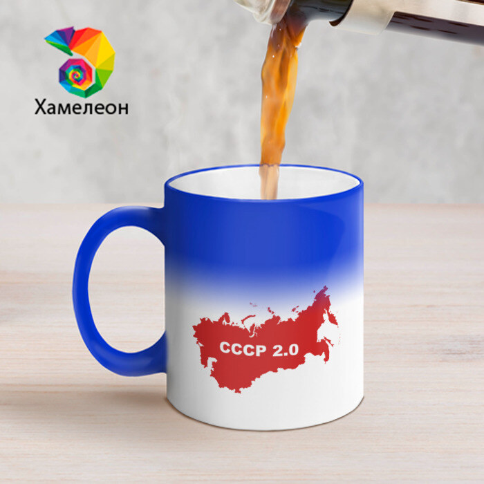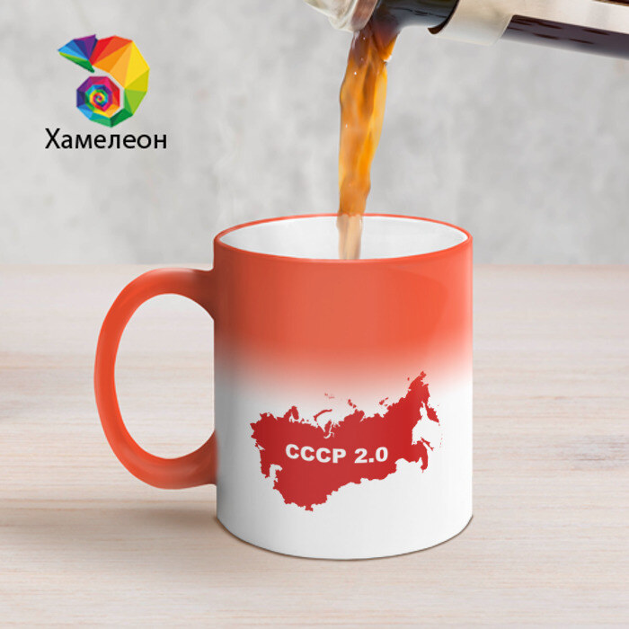 Кружка-сюрприз: пока в ней холодная вода, она будет оставаться однотонной, а когда нальете горячую — проявится принт. Принт начинает проявляться буквально через 10 секунд, в течение минуты он будет виден полностью. Когда остынет, кружка вернется к изначальному цвету.