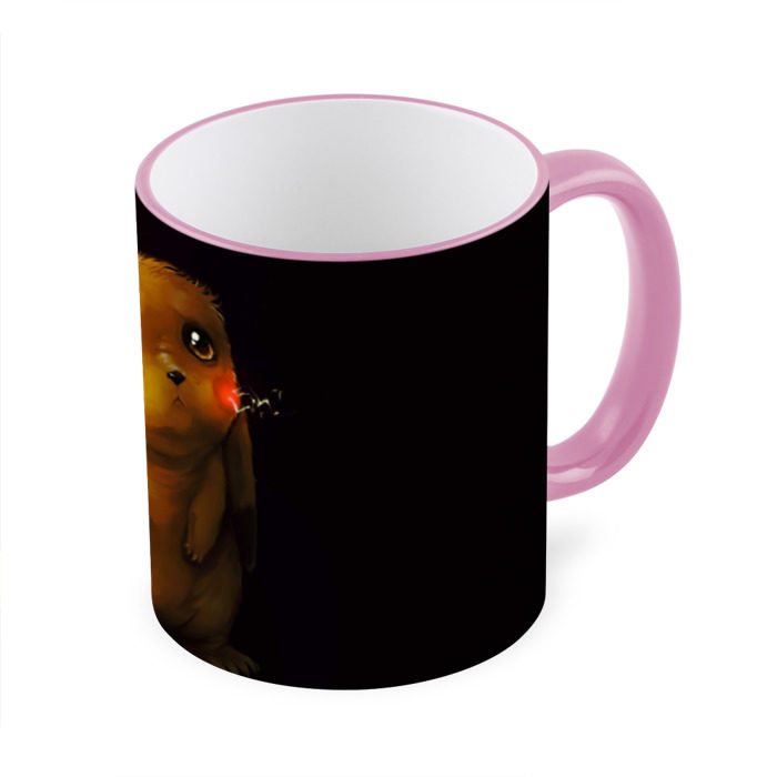 Кружка с принтом, который наносится по всей внешней поверхности, кроме прямоугольника у ручки. У кружки цветной ободок сверху и ручка. Можно заказать со своим дизайном.