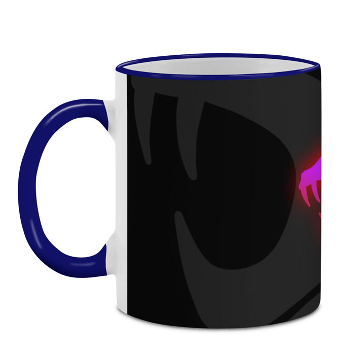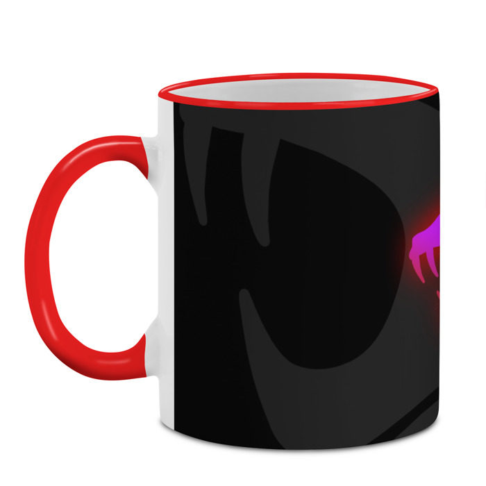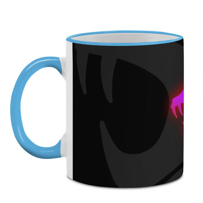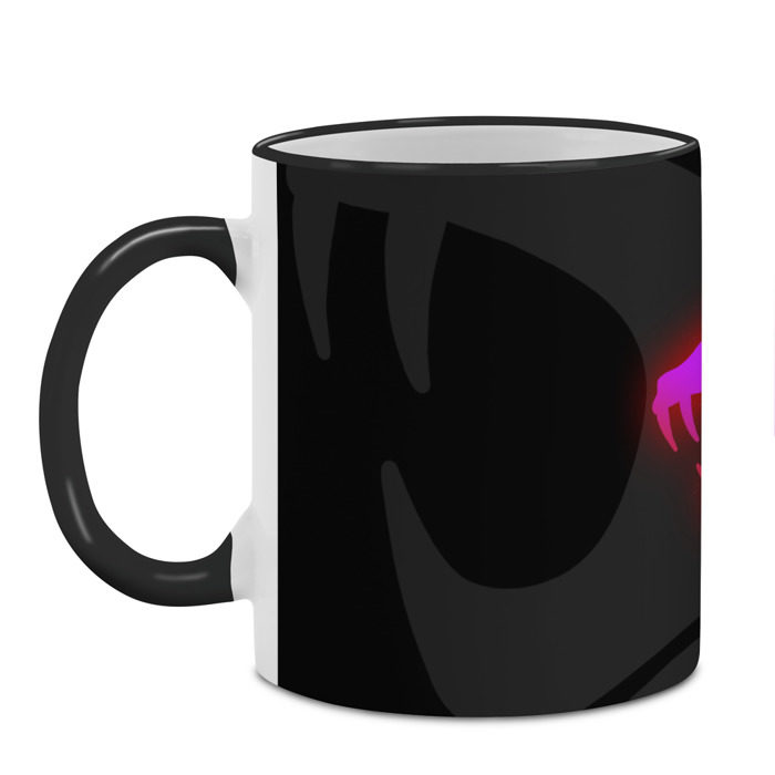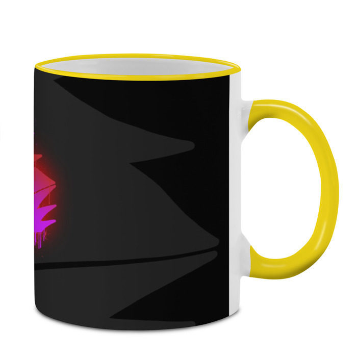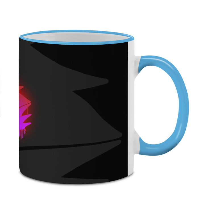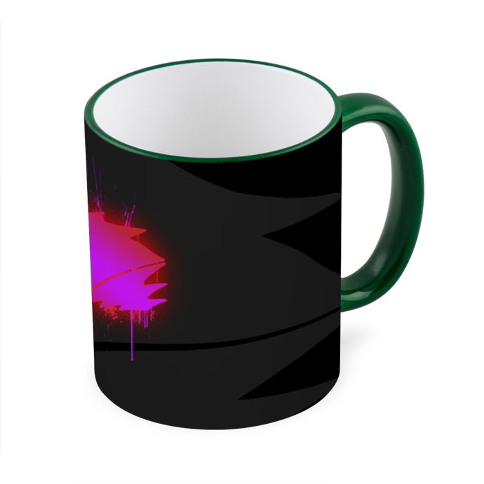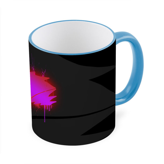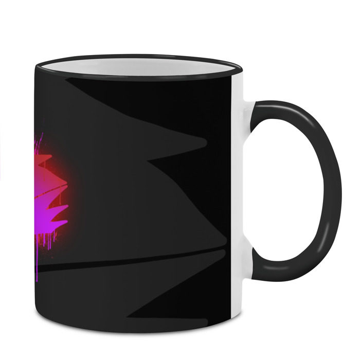 Кружка с принтом, который наносится по всей внешней поверхности, кроме прямоугольника у ручки. У кружки цветной ободок сверху и ручка. Можно заказать со своим дизайном.