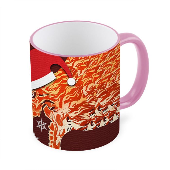 Кружка с принтом, который наносится по всей внешней поверхности, кроме прямоугольника у ручки. У кружки цветной ободок сверху и ручка. Можно заказать со своим дизайном.