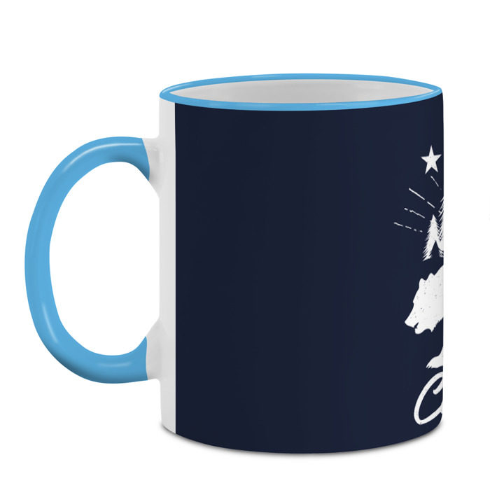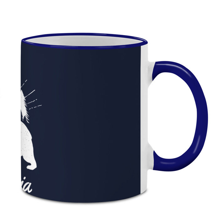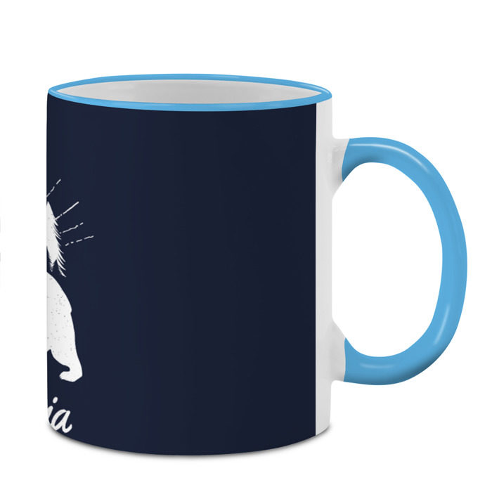 Кружка с принтом, который наносится по всей внешней поверхности, кроме прямоугольника у ручки. У кружки цветной ободок сверху и ручка. Можно заказать со своим дизайном.