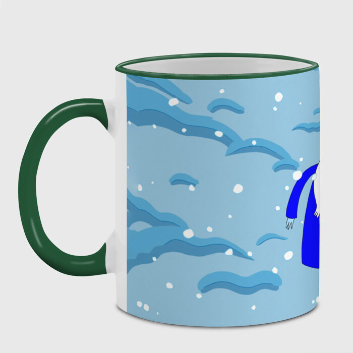 Кружка с принтом, который наносится по всей внешней поверхности, кроме прямоугольника у ручки. У кружки цветной ободок сверху и ручка. Можно заказать со своим дизайном.