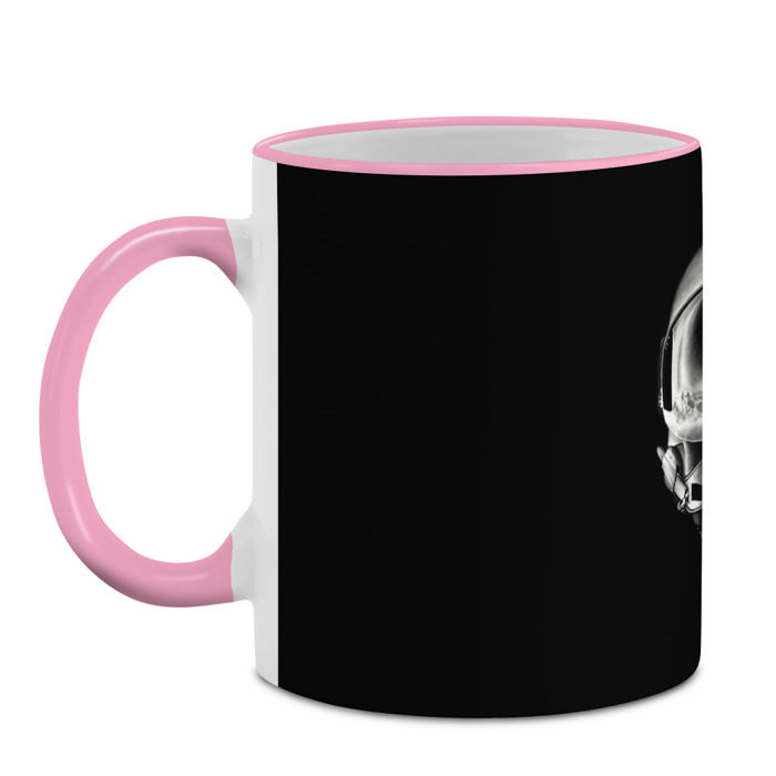 Кружка с принтом, который наносится по всей внешней поверхности, кроме прямоугольника у ручки. У кружки цветной ободок сверху и ручка. Можно заказать со своим дизайном.
