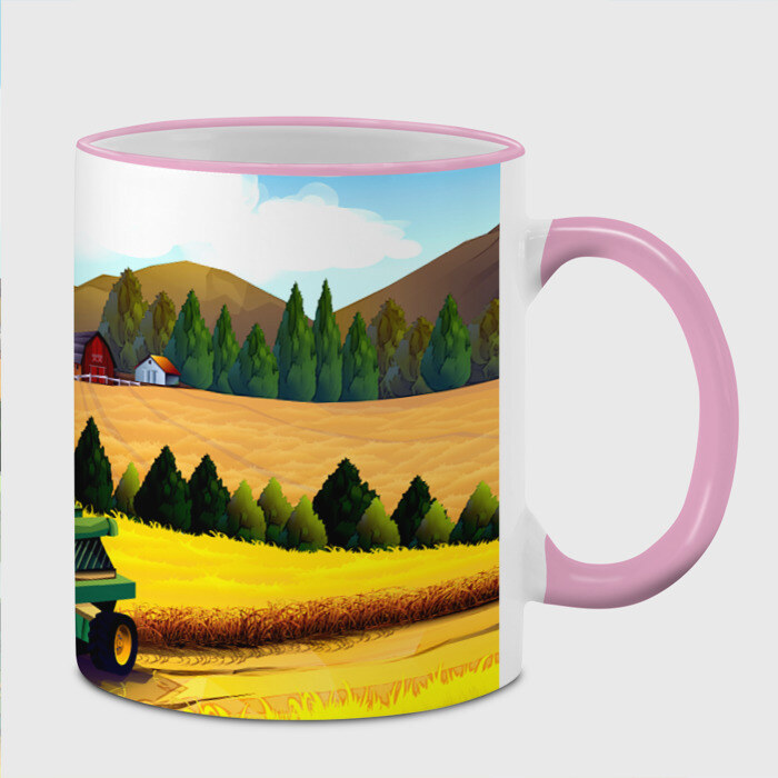 Кружка с принтом, который наносится по всей внешней поверхности, кроме прямоугольника у ручки. У кружки цветной ободок сверху и ручка. Можно заказать со своим дизайном.