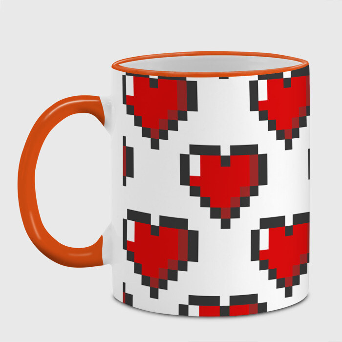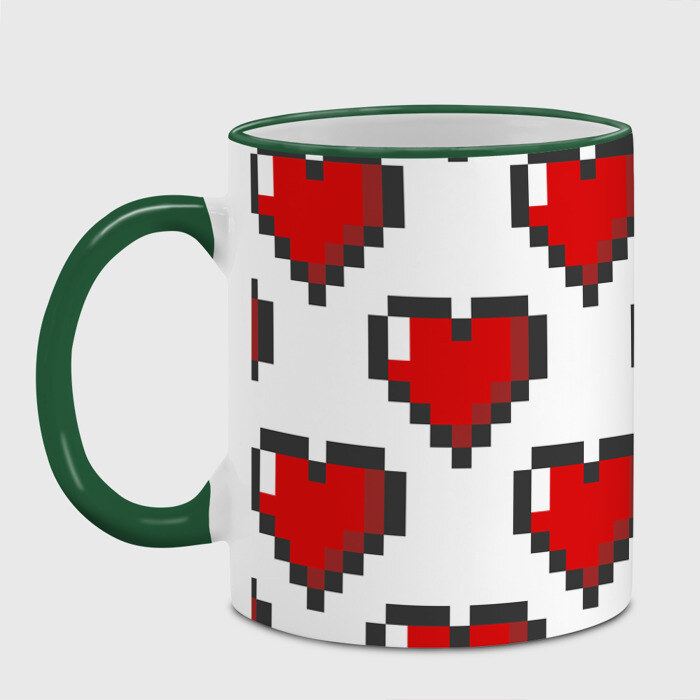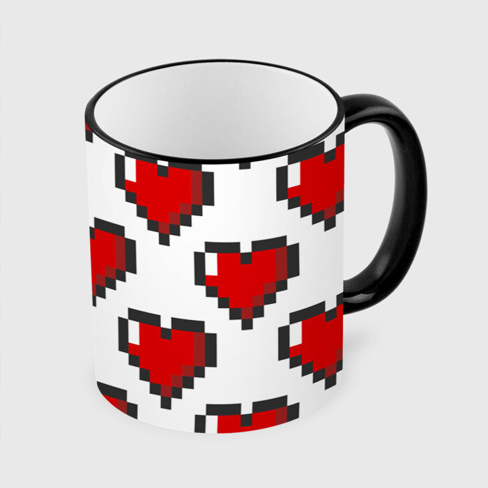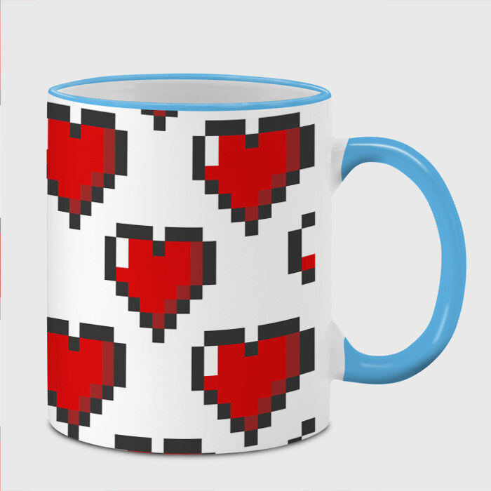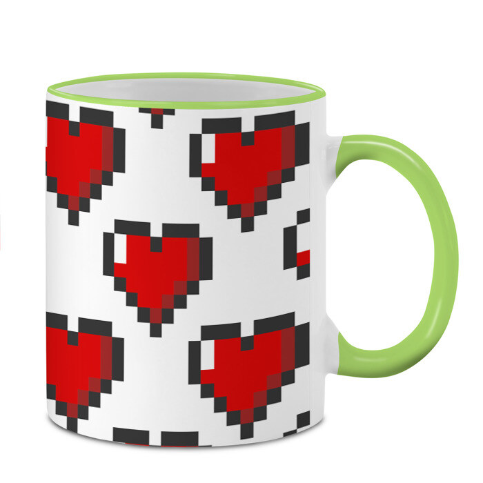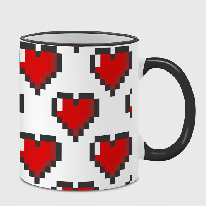 Кружки с полной запечаткой ПИКСЕЛЬНЫЕ СЕРДЕЧКИ