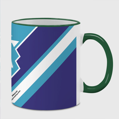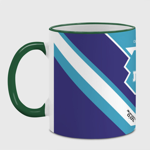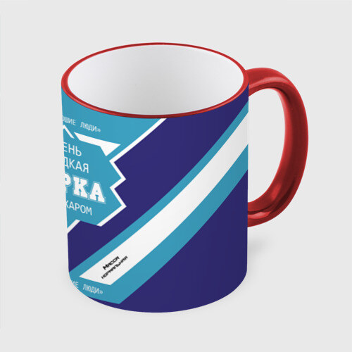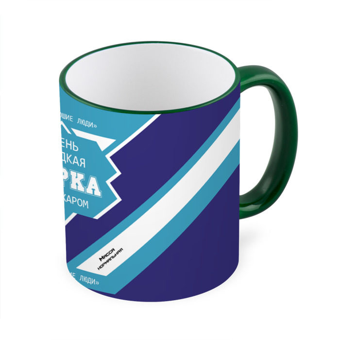 Кружка с принтом, который наносится по всей внешней поверхности, кроме прямоугольника у ручки. У кружки цветной ободок сверху и ручка. Можно заказать со своим дизайном.