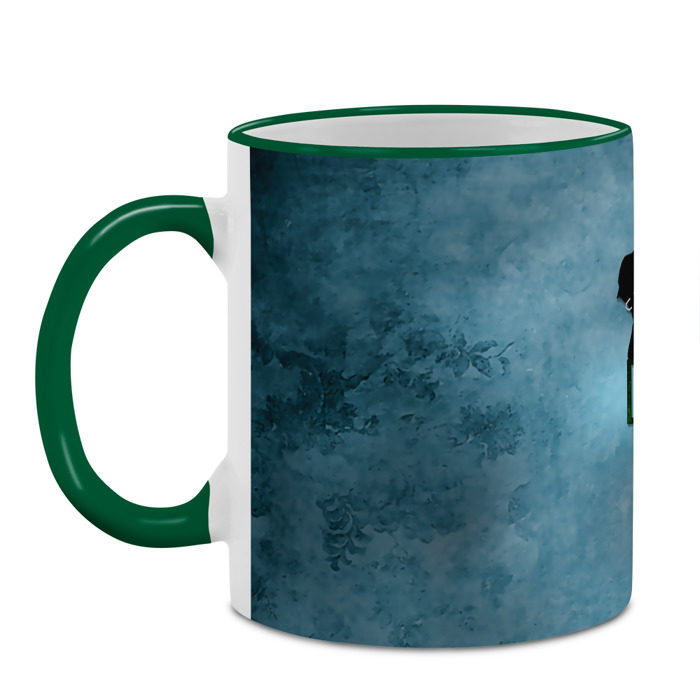 Кружка с принтом, который наносится по всей внешней поверхности, кроме прямоугольника у ручки. У кружки цветной ободок сверху и ручка. Можно заказать со своим дизайном.