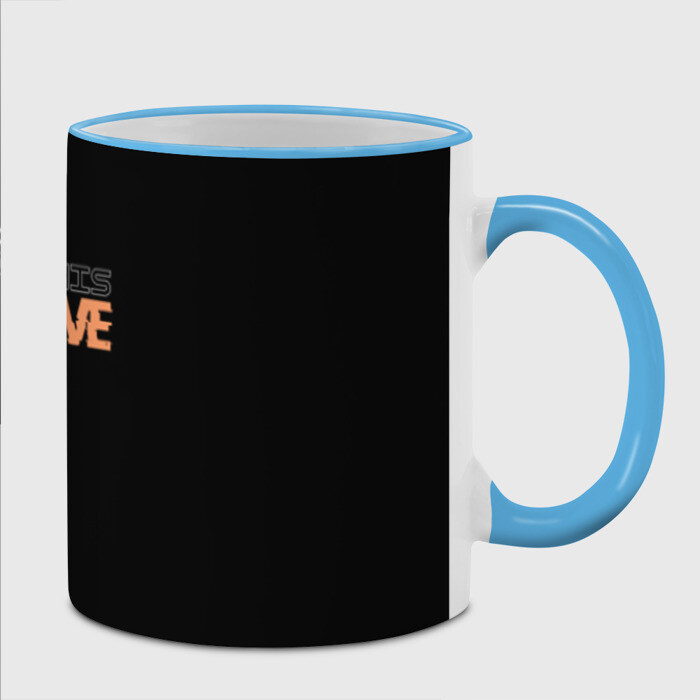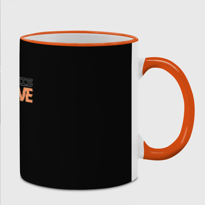 Кружка с принтом, который наносится по всей внешней поверхности, кроме прямоугольника у ручки. У кружки цветной ободок сверху и ручка. Можно заказать со своим дизайном.