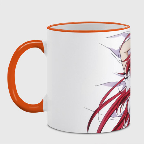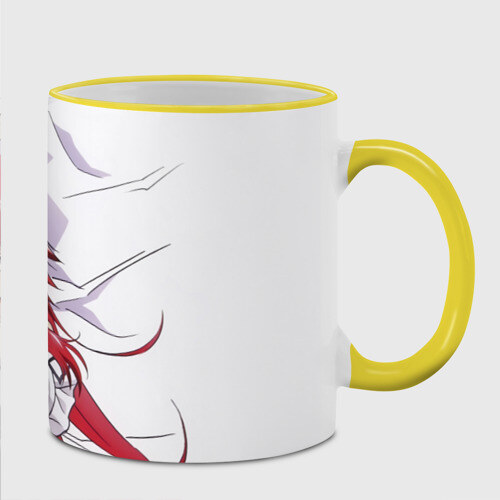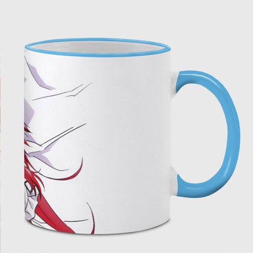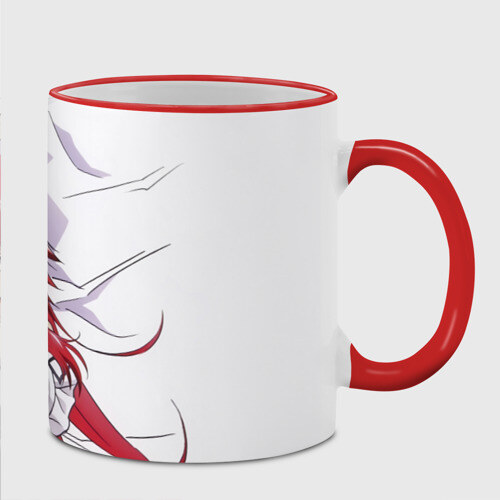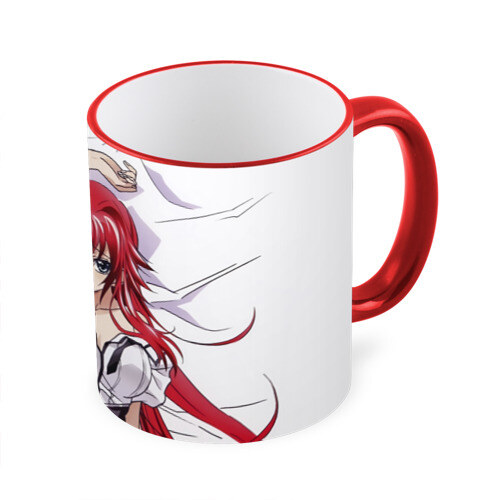 Кружка с принтом, который наносится по всей внешней поверхности, кроме прямоугольника у ручки. У кружки цветной ободок сверху и ручка. Можно заказать со своим дизайном.