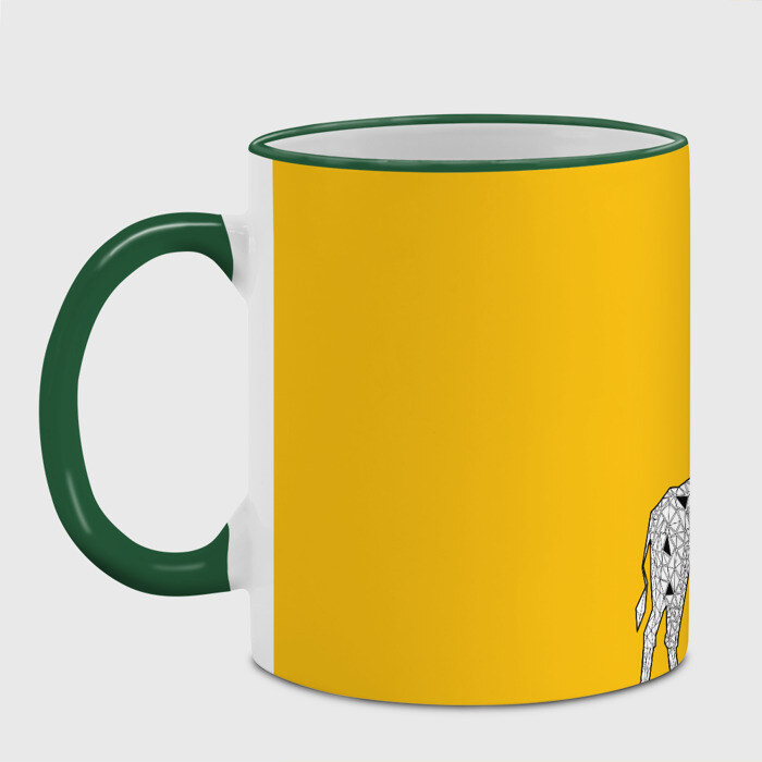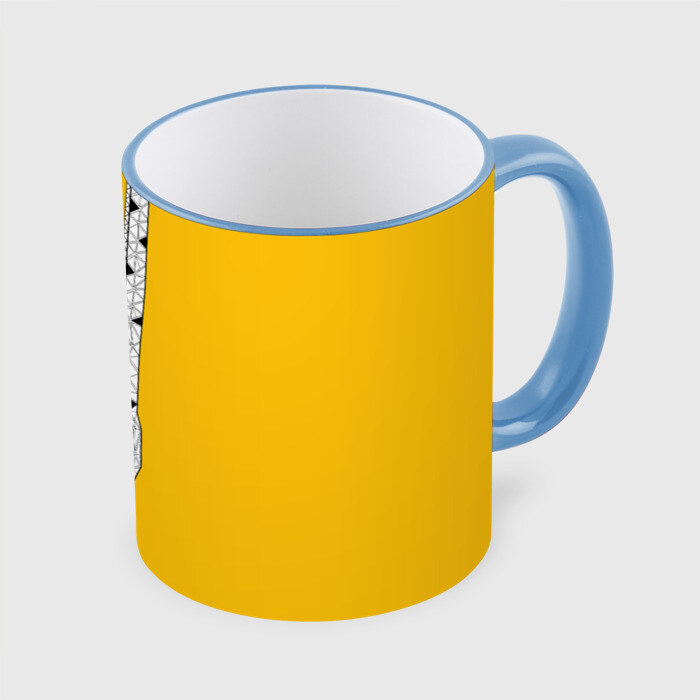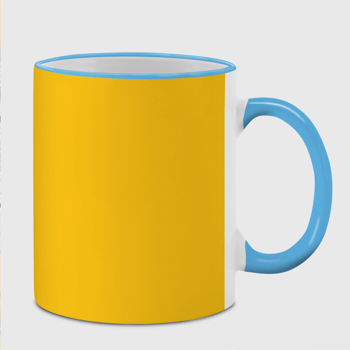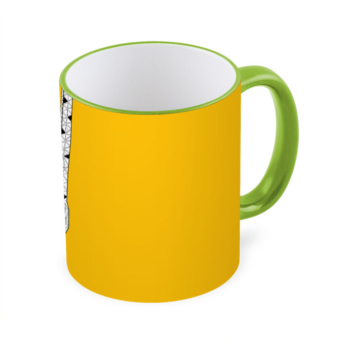 Кружка с принтом, который наносится по всей внешней поверхности, кроме прямоугольника у ручки. У кружки цветной ободок сверху и ручка. Можно заказать со своим дизайном.