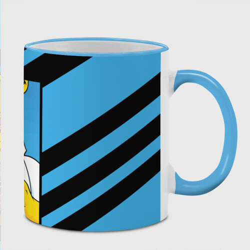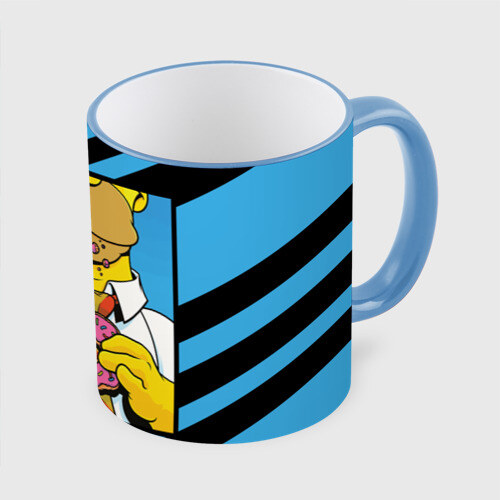 Кружка с принтом, который наносится по всей внешней поверхности, кроме прямоугольника у ручки. У кружки цветной ободок сверху и ручка. Можно заказать со своим дизайном.