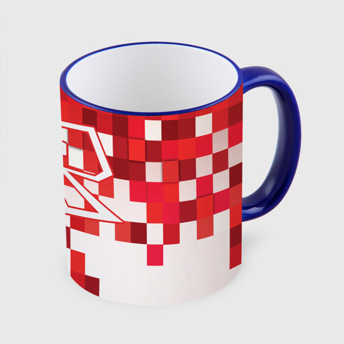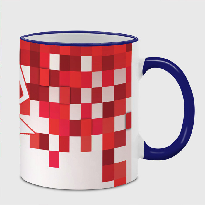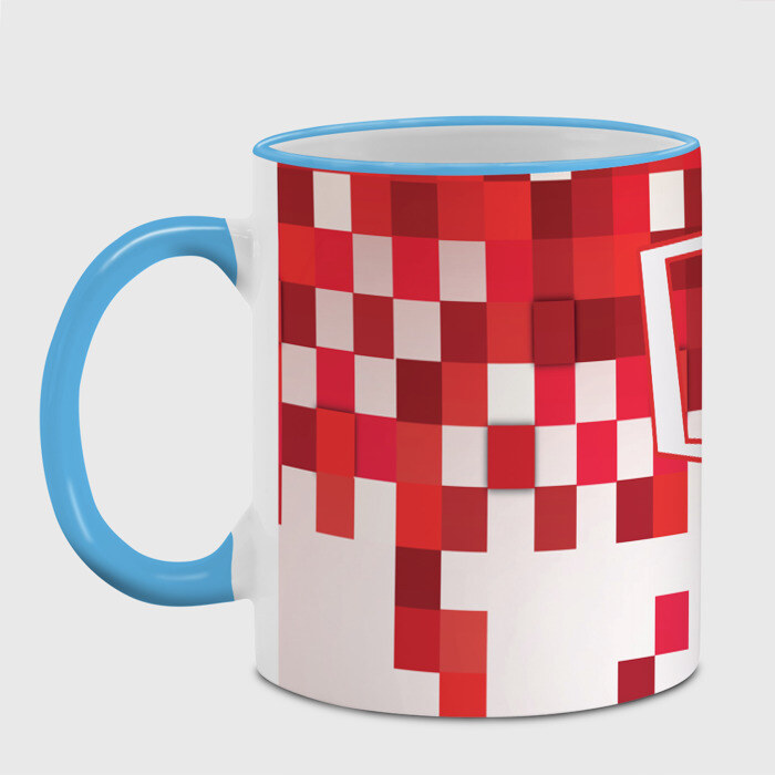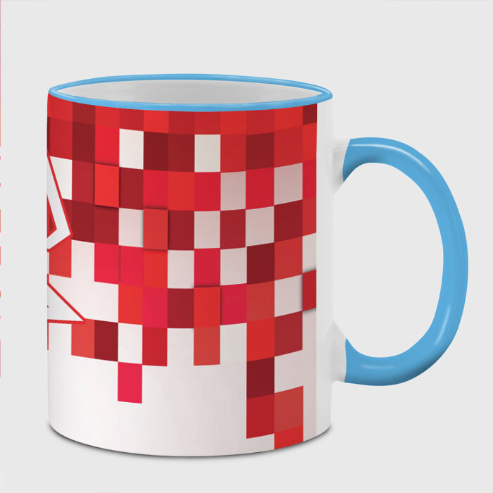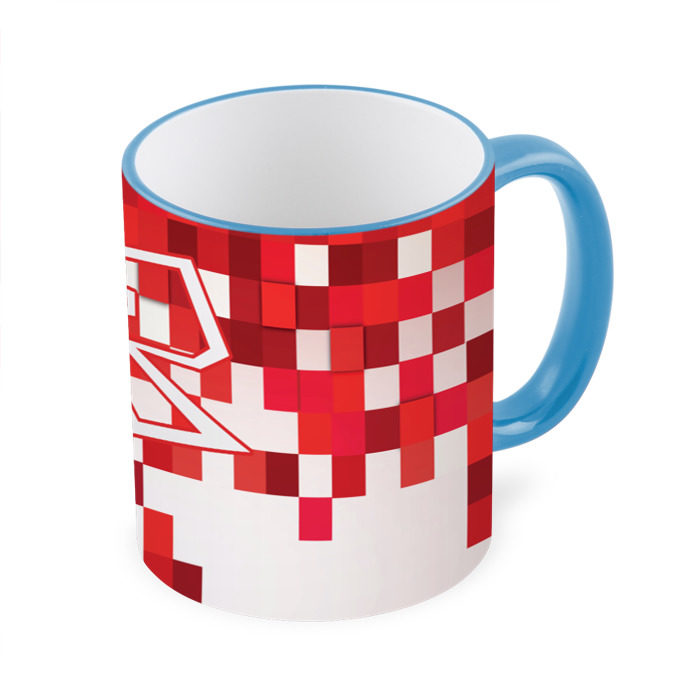 Кружка с принтом, который наносится по всей внешней поверхности, кроме прямоугольника у ручки. У кружки цветной ободок сверху и ручка. Можно заказать со своим дизайном.