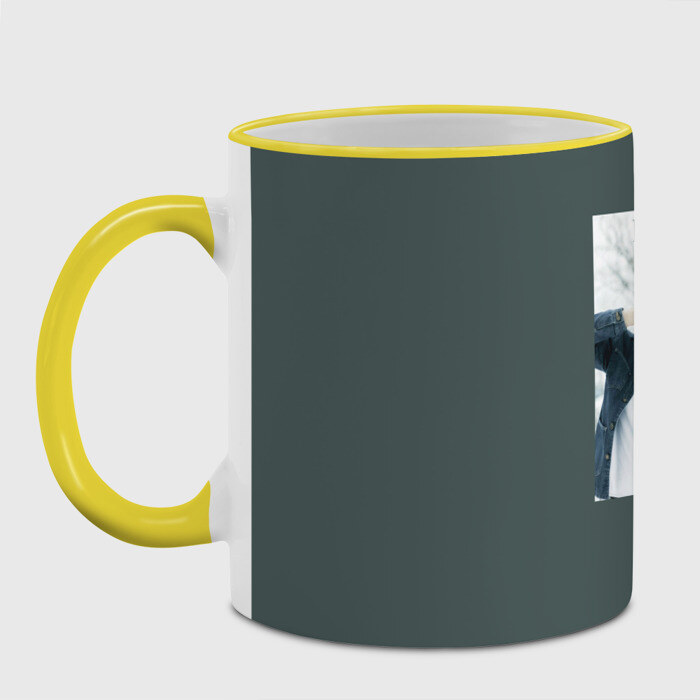 Кружка с принтом, который наносится по всей внешней поверхности, кроме прямоугольника у ручки. У кружки цветной ободок сверху и ручка. Можно заказать со своим дизайном.