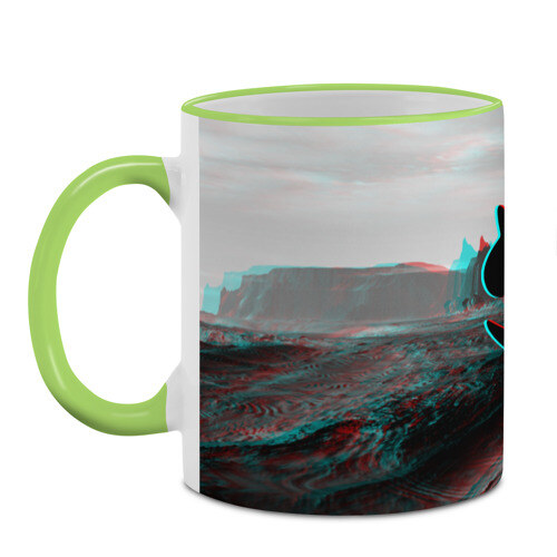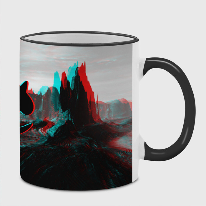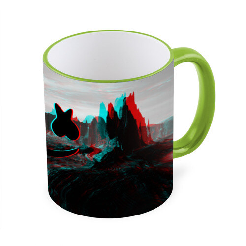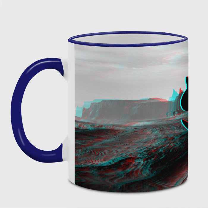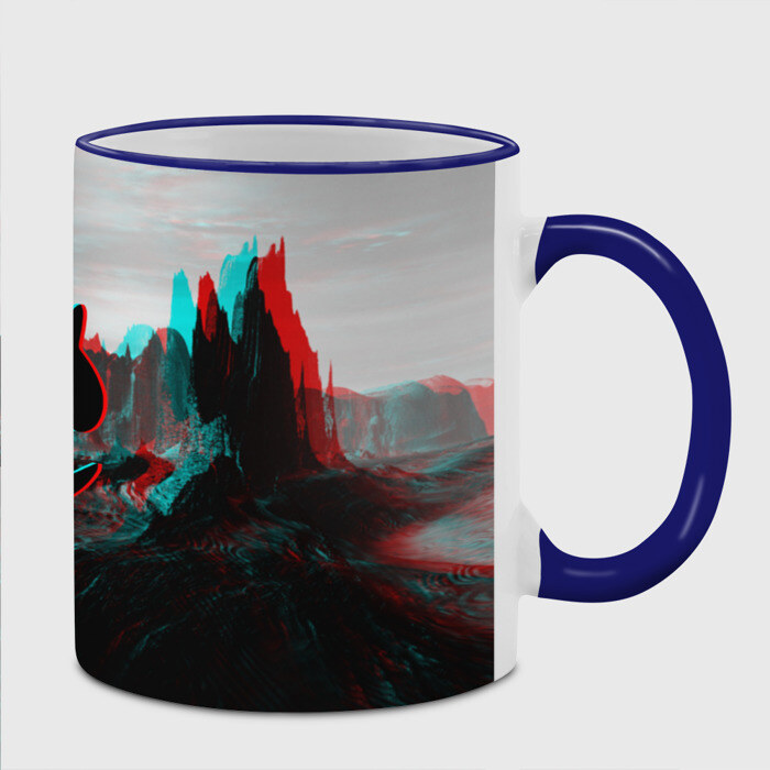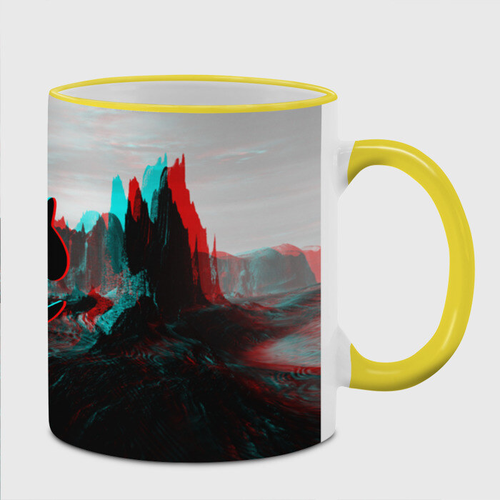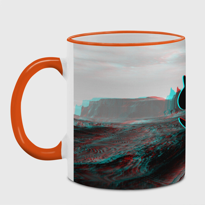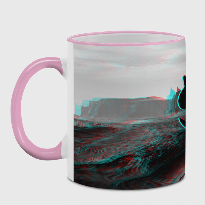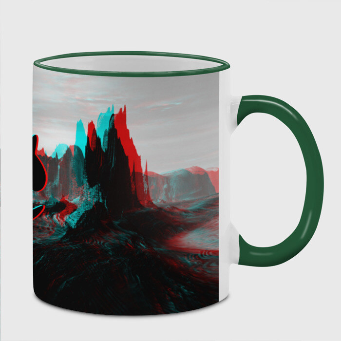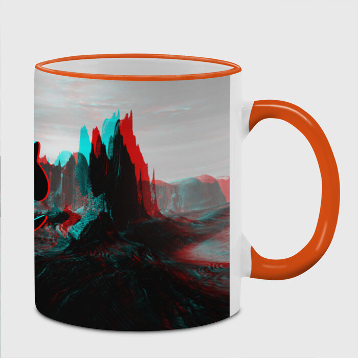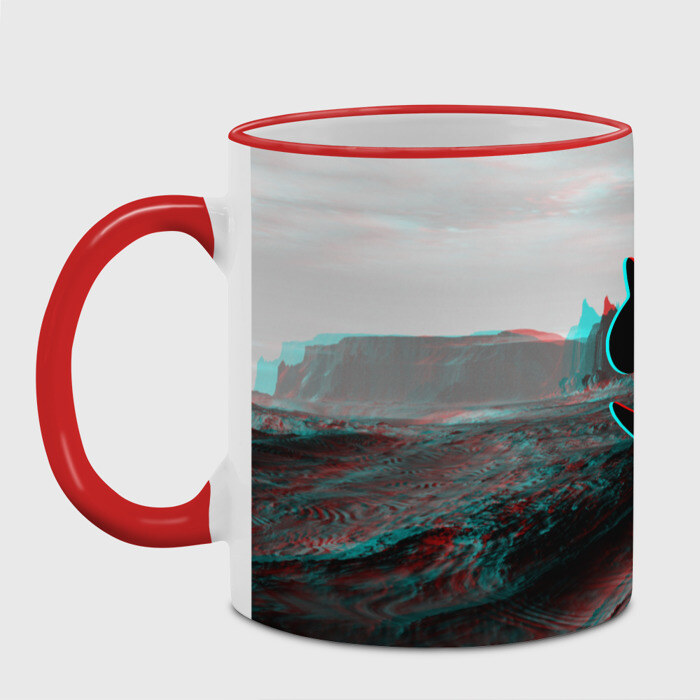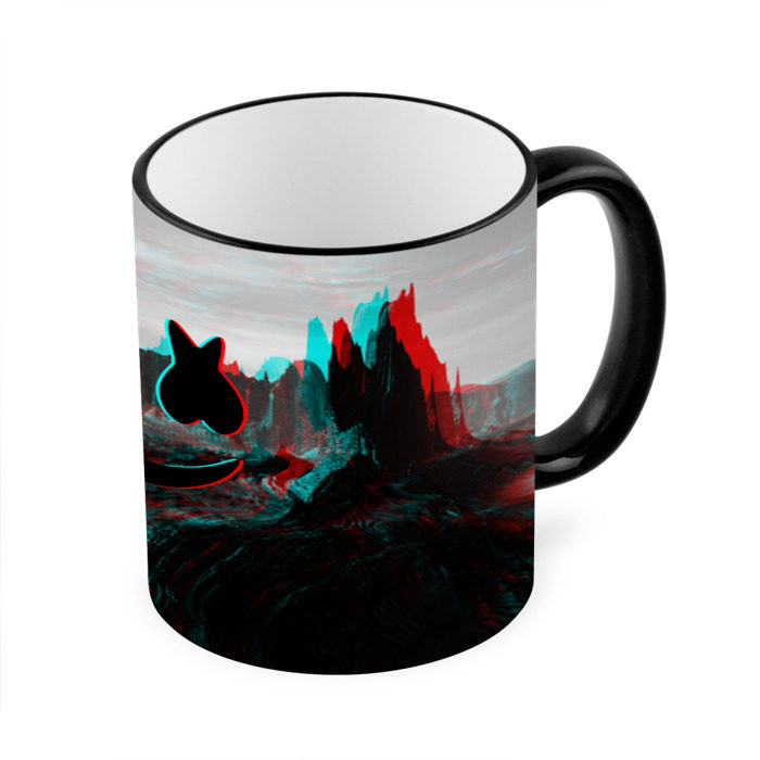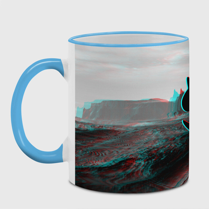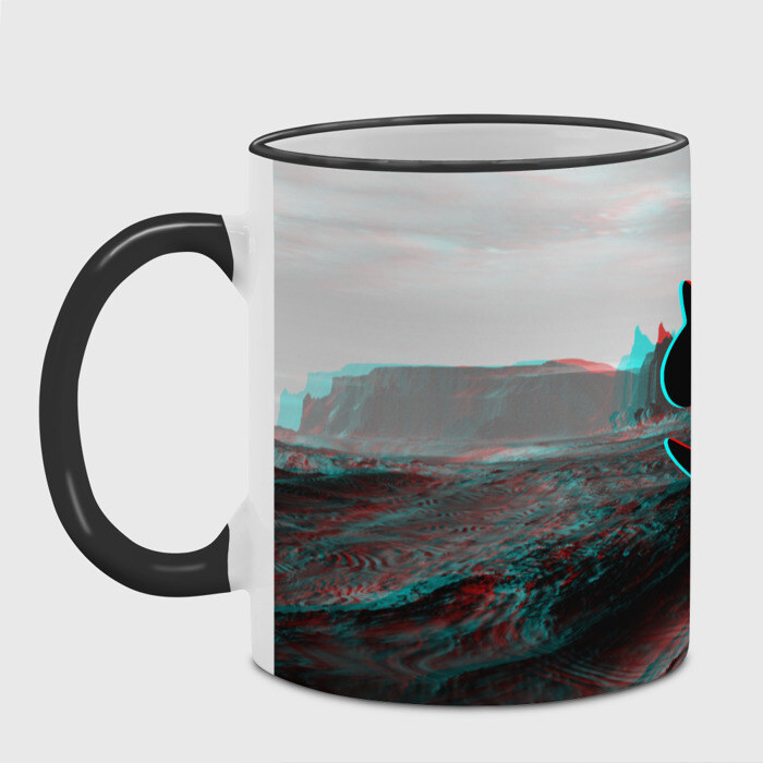 Кружка с принтом, который наносится по всей внешней поверхности, кроме прямоугольника у ручки. У кружки цветной ободок сверху и ручка. Можно заказать со своим дизайном.