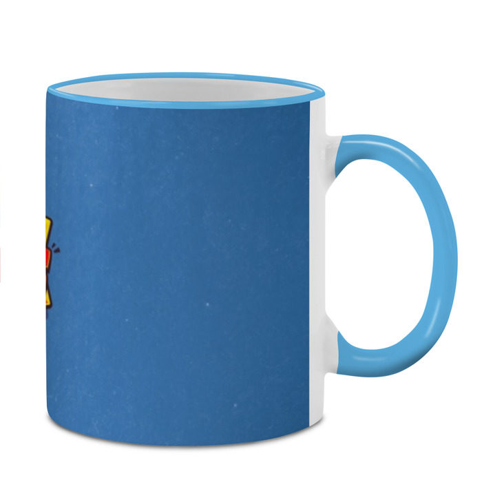 Кружка с принтом, который наносится по всей внешней поверхности, кроме прямоугольника у ручки. У кружки цветной ободок сверху и ручка. Можно заказать со своим дизайном.