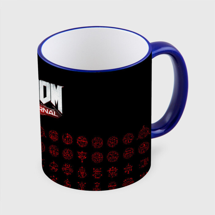 Кружка с принтом, который наносится по всей внешней поверхности, кроме прямоугольника у ручки. У кружки цветной ободок сверху и ручка. Можно заказать со своим дизайном.
