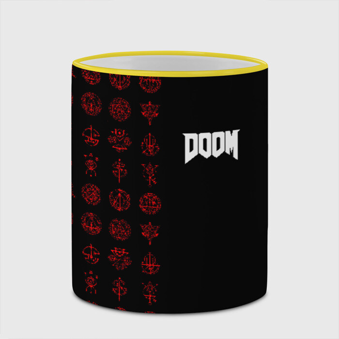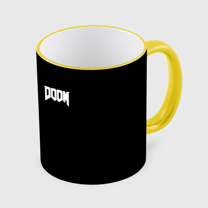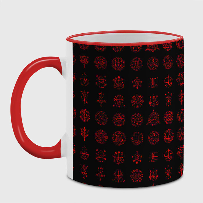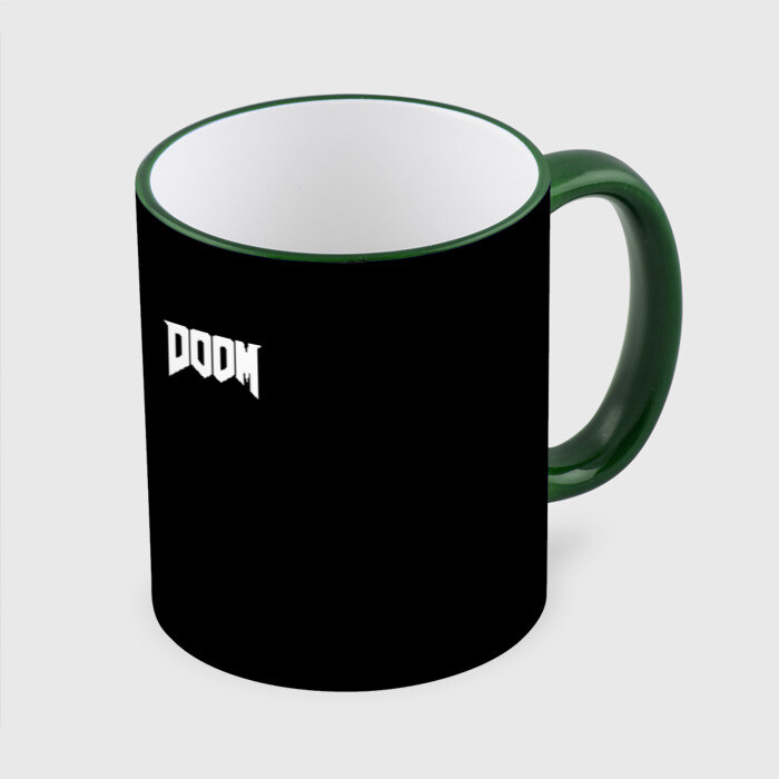 Кружка с принтом, который наносится по всей внешней поверхности, кроме прямоугольника у ручки. У кружки цветной ободок сверху и ручка. Можно заказать со своим дизайном.