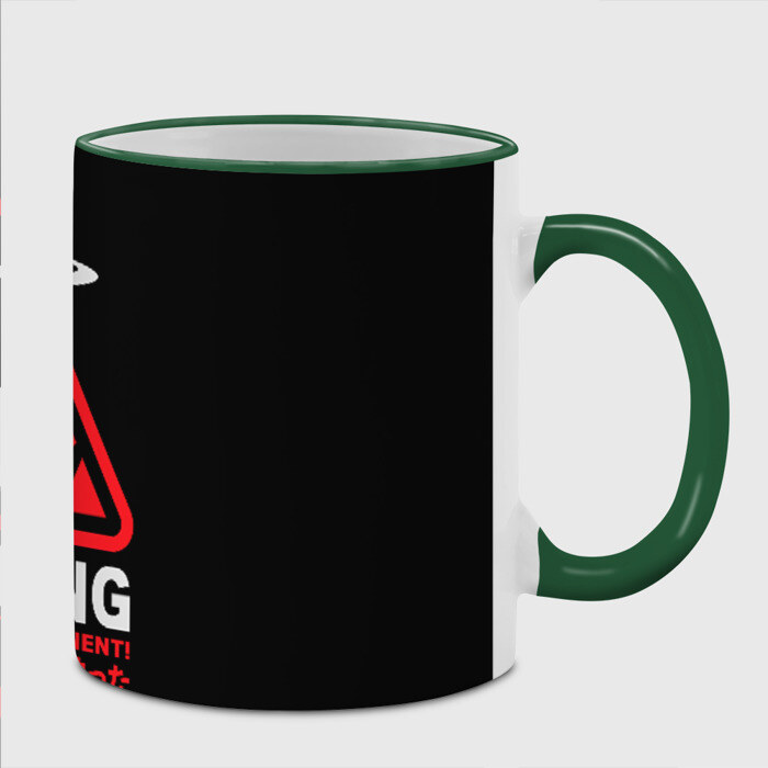 Кружка с принтом, который наносится по всей внешней поверхности, кроме прямоугольника у ручки. У кружки цветной ободок сверху и ручка. Можно заказать со своим дизайном.