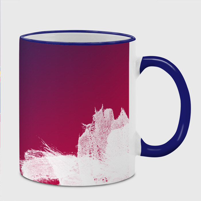 Кружка с принтом, который наносится по всей внешней поверхности, кроме прямоугольника у ручки. У кружки цветной ободок сверху и ручка. Можно заказать со своим дизайном.