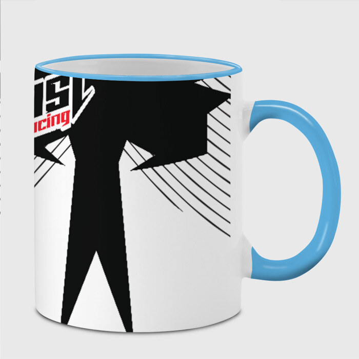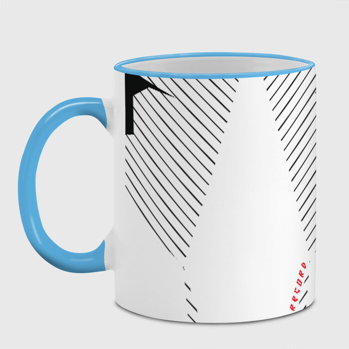 Кружка с принтом, который наносится по всей внешней поверхности, кроме прямоугольника у ручки. У кружки цветной ободок сверху и ручка. Можно заказать со своим дизайном.
