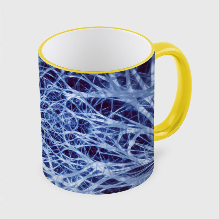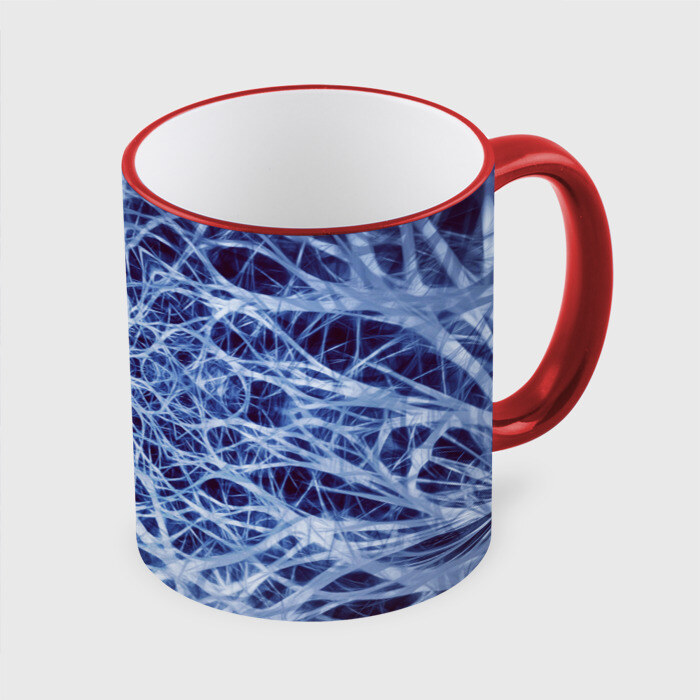 Кружка с принтом, который наносится по всей внешней поверхности, кроме прямоугольника у ручки. У кружки цветной ободок сверху и ручка. Можно заказать со своим дизайном.