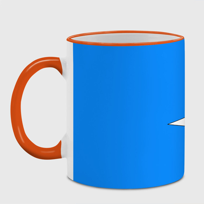 Кружка с принтом, который наносится по всей внешней поверхности, кроме прямоугольника у ручки. У кружки цветной ободок сверху и ручка. Можно заказать со своим дизайном.