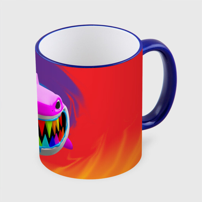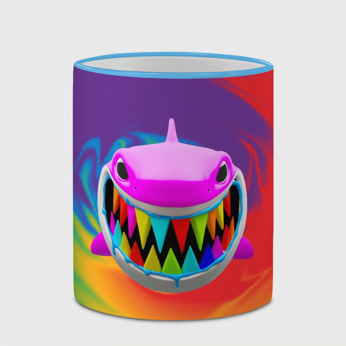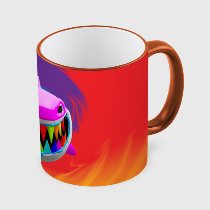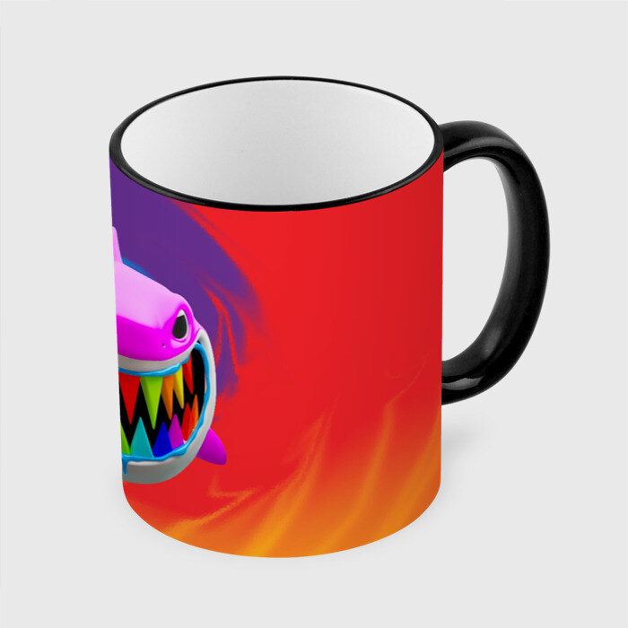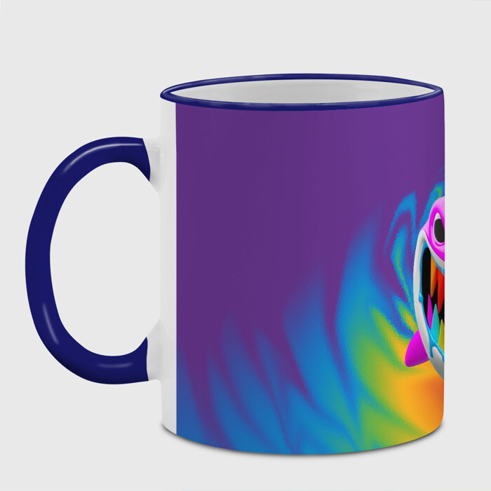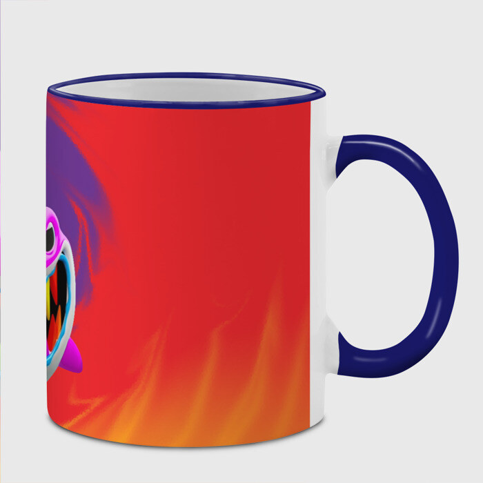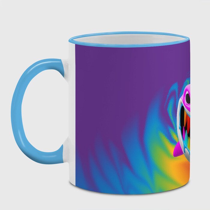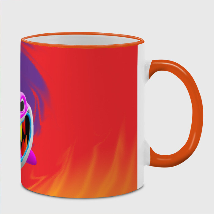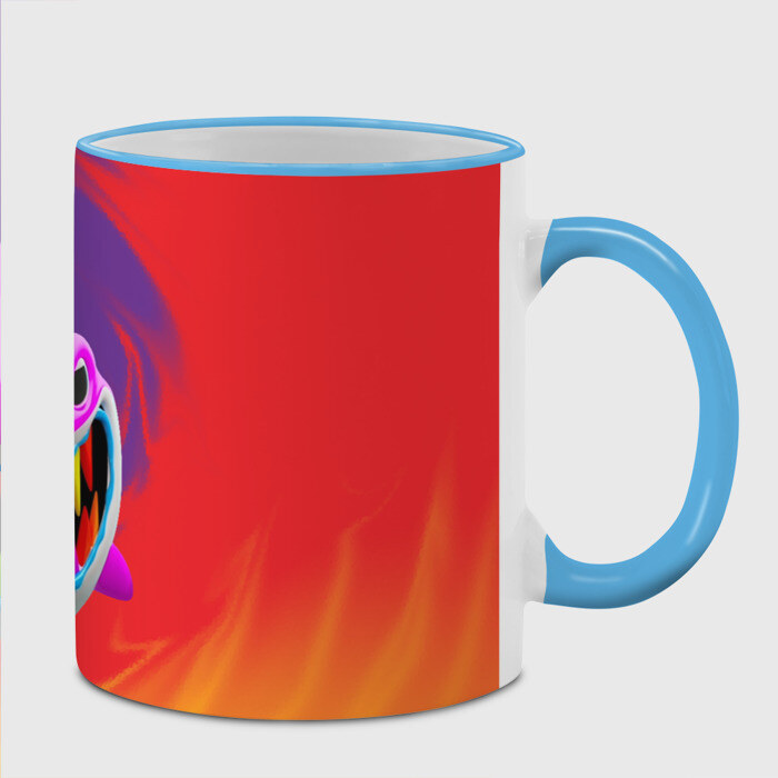Кружка с принтом, который наносится по всей внешней поверхности, кроме прямоугольника у ручки. У кружки цветной ободок сверху и ручка. Можно заказать со своим дизайном.