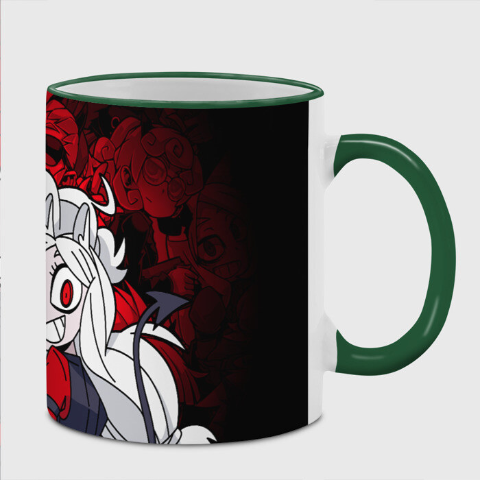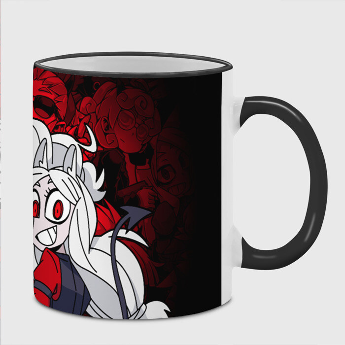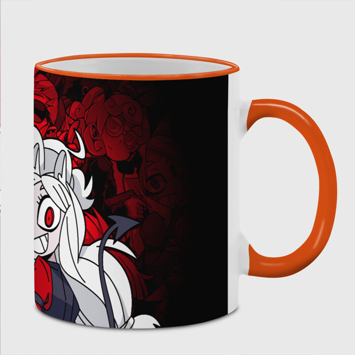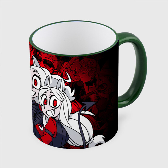 Кружка с принтом, который наносится по всей внешней поверхности, кроме прямоугольника у ручки. У кружки цветной ободок сверху и ручка. Можно заказать со своим дизайном.