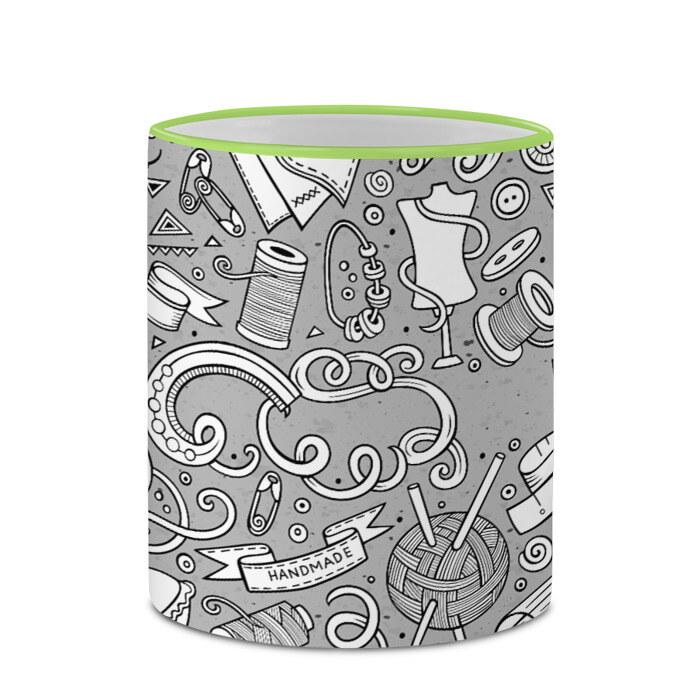 Кружка с принтом, который наносится по всей внешней поверхности, кроме прямоугольника у ручки. У кружки цветной ободок сверху и ручка. Можно заказать со своим дизайном.