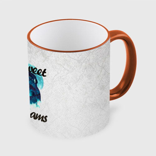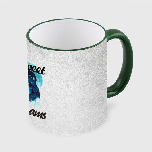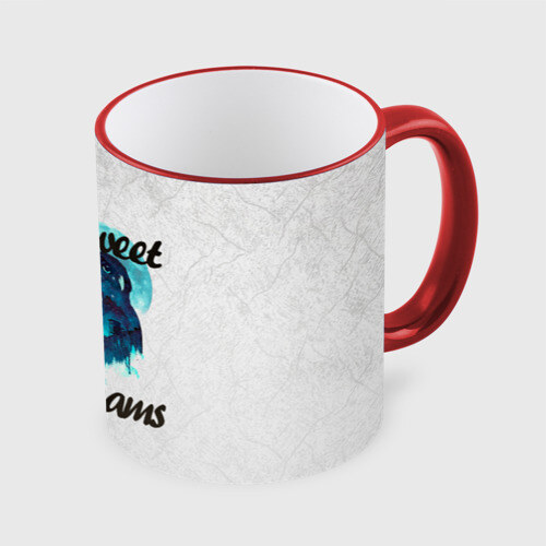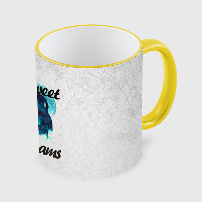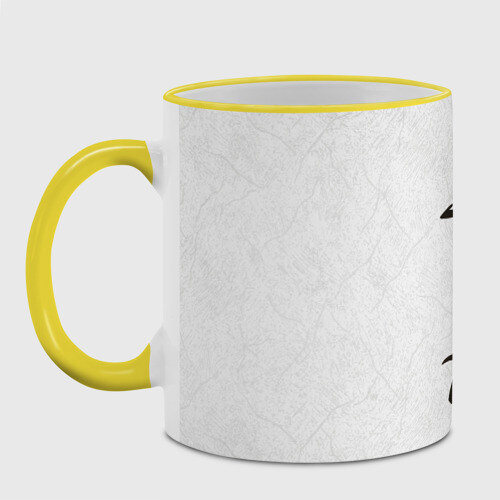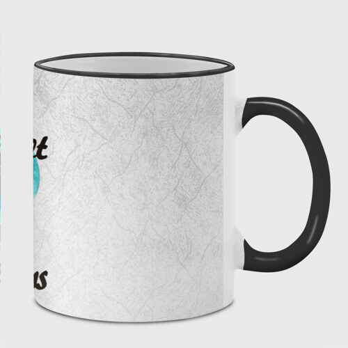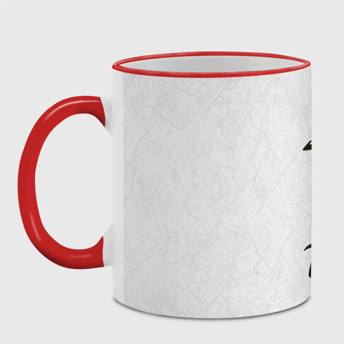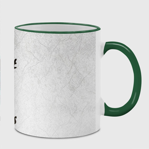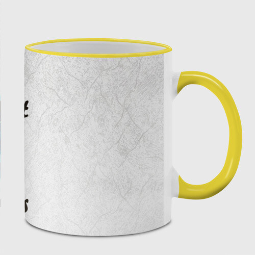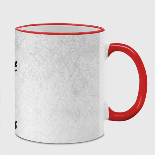 Кружка с принтом, который наносится по всей внешней поверхности, кроме прямоугольника у ручки. У кружки цветной ободок сверху и ручка. Можно заказать со своим дизайном.