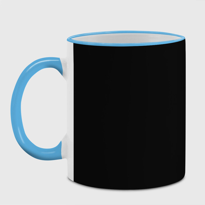 Кружка с принтом, который наносится по всей внешней поверхности, кроме прямоугольника у ручки. У кружки цветной ободок сверху и ручка. Можно заказать со своим дизайном.
