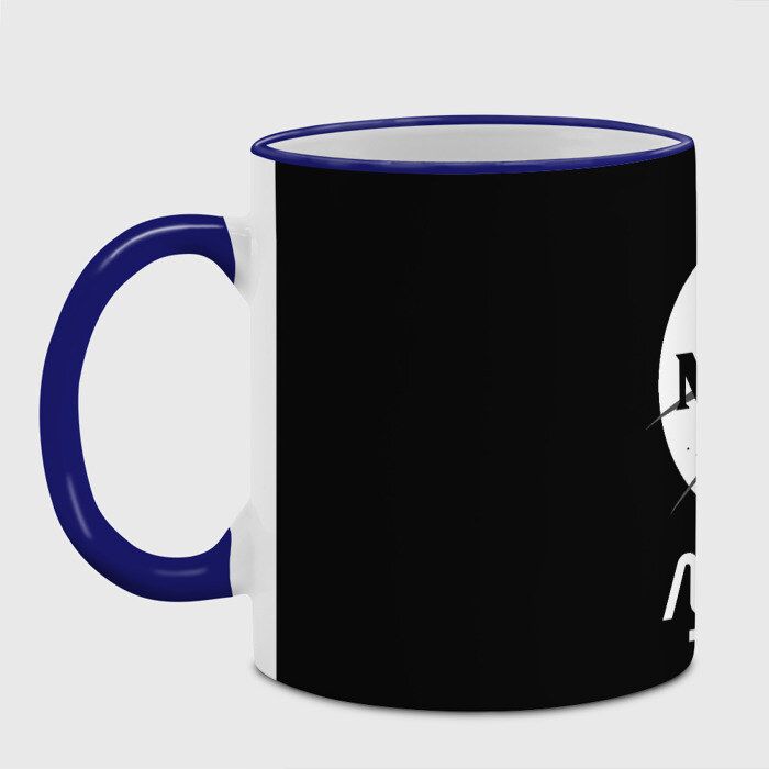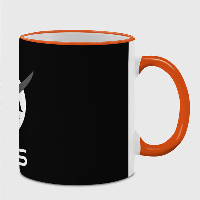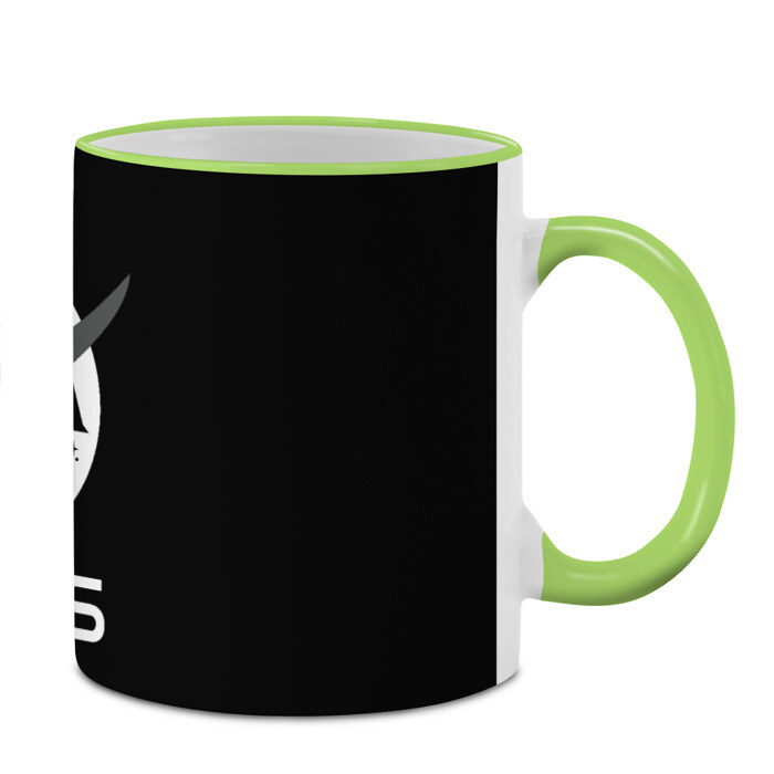 Кружка с принтом, который наносится по всей внешней поверхности, кроме прямоугольника у ручки. У кружки цветной ободок сверху и ручка. Можно заказать со своим дизайном.