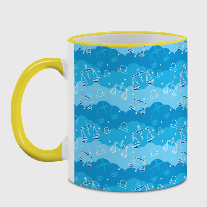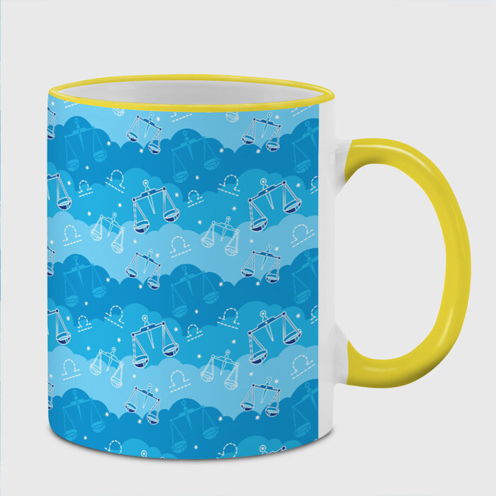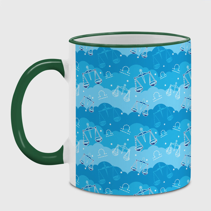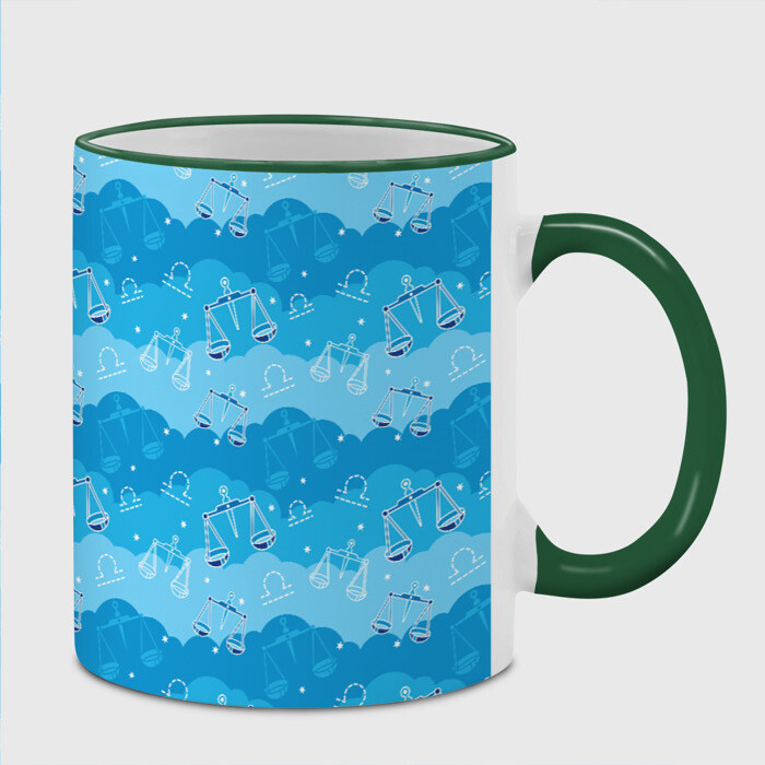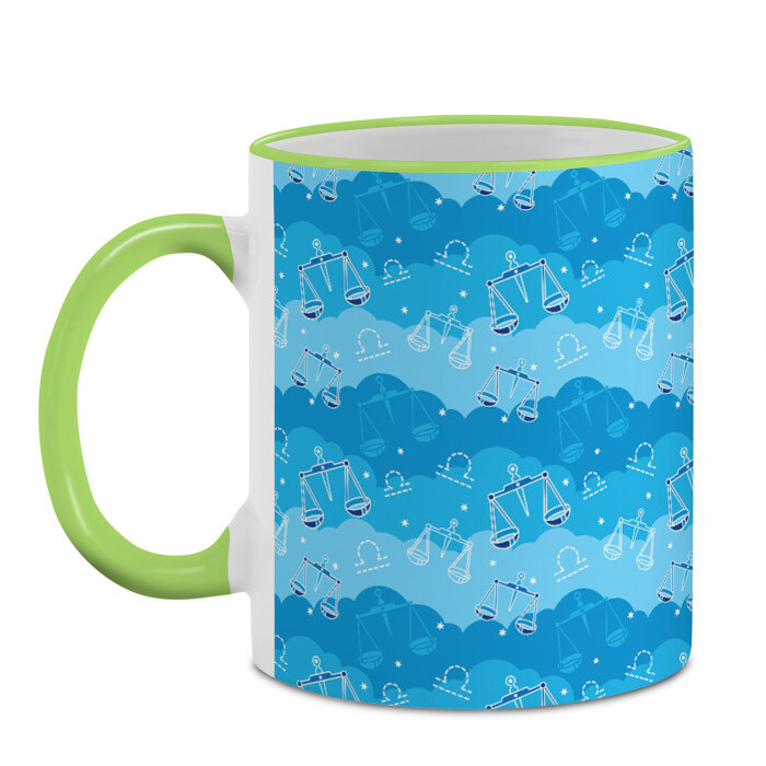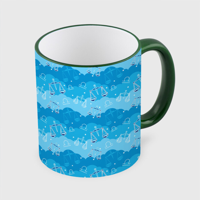 Кружка с принтом, который наносится по всей внешней поверхности, кроме прямоугольника у ручки. У кружки цветной ободок сверху и ручка. Можно заказать со своим дизайном.