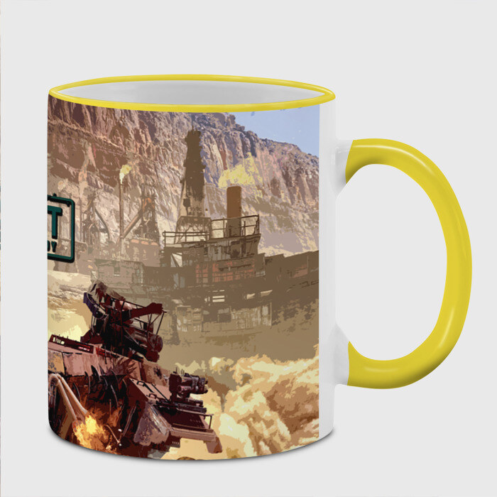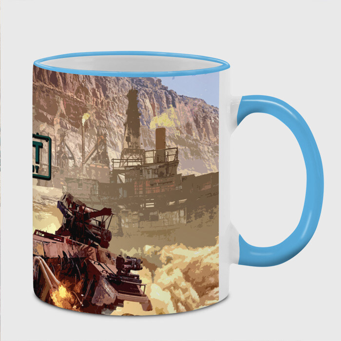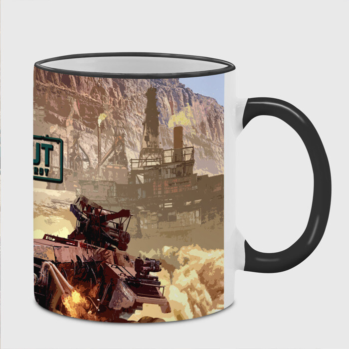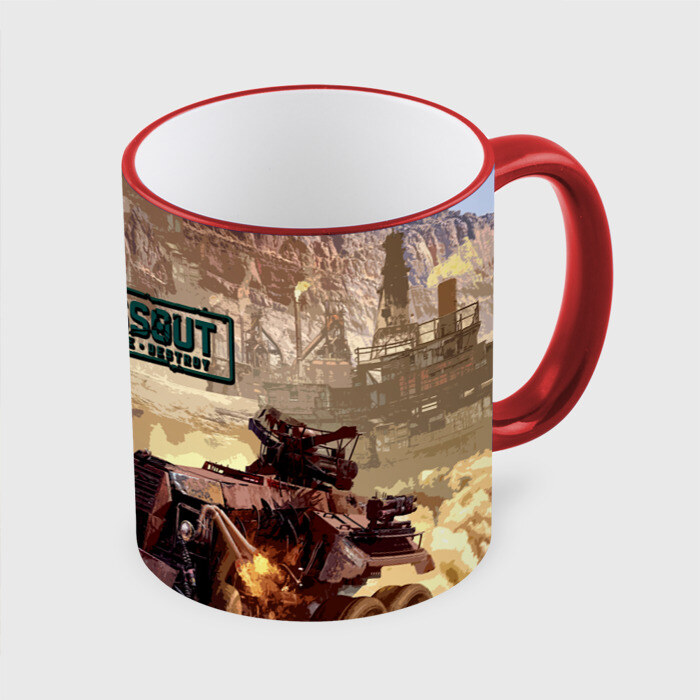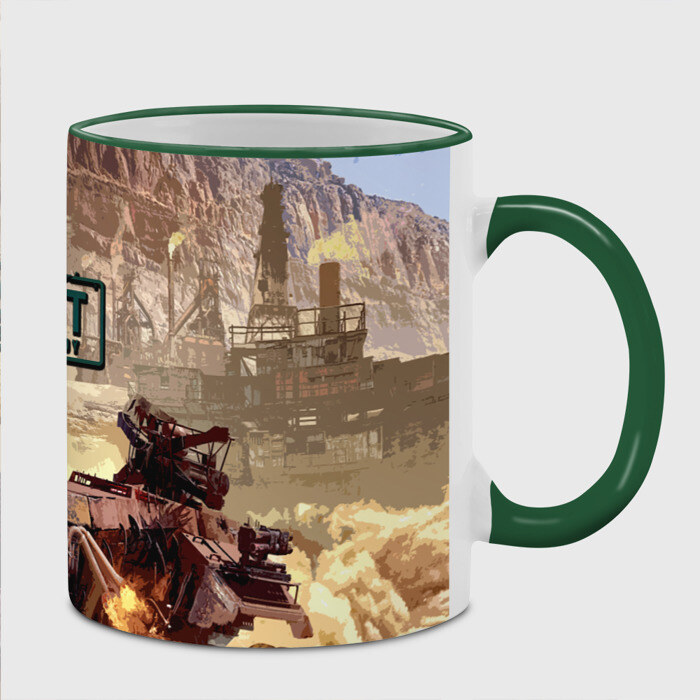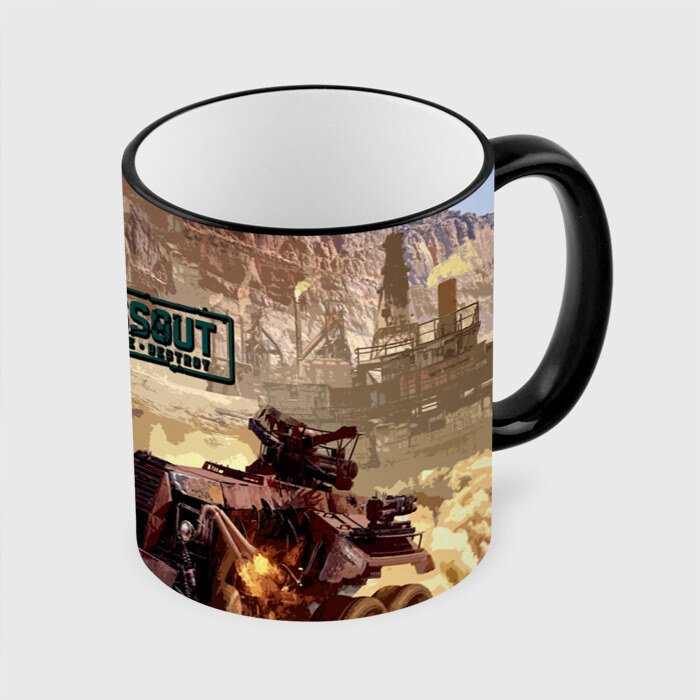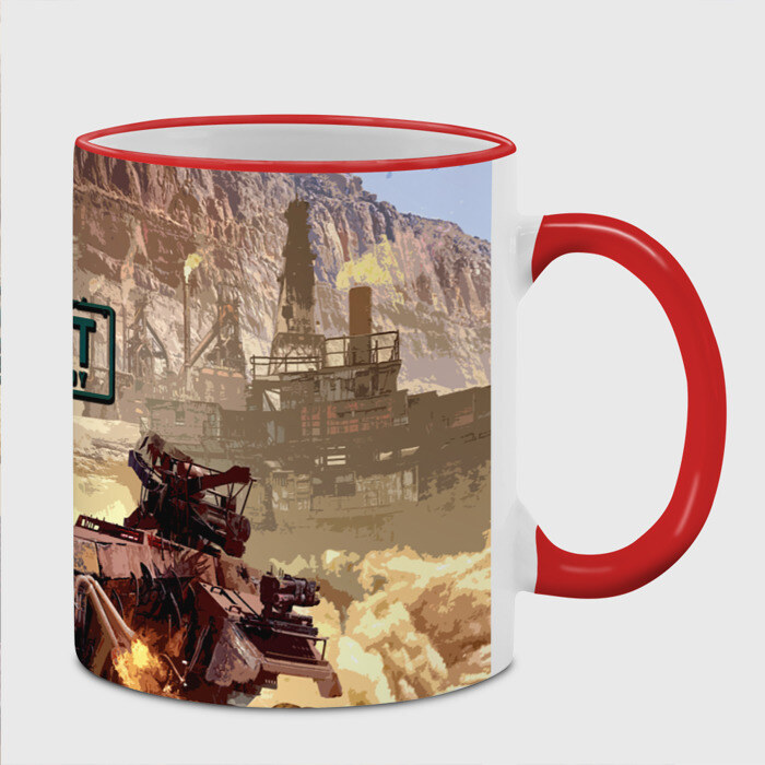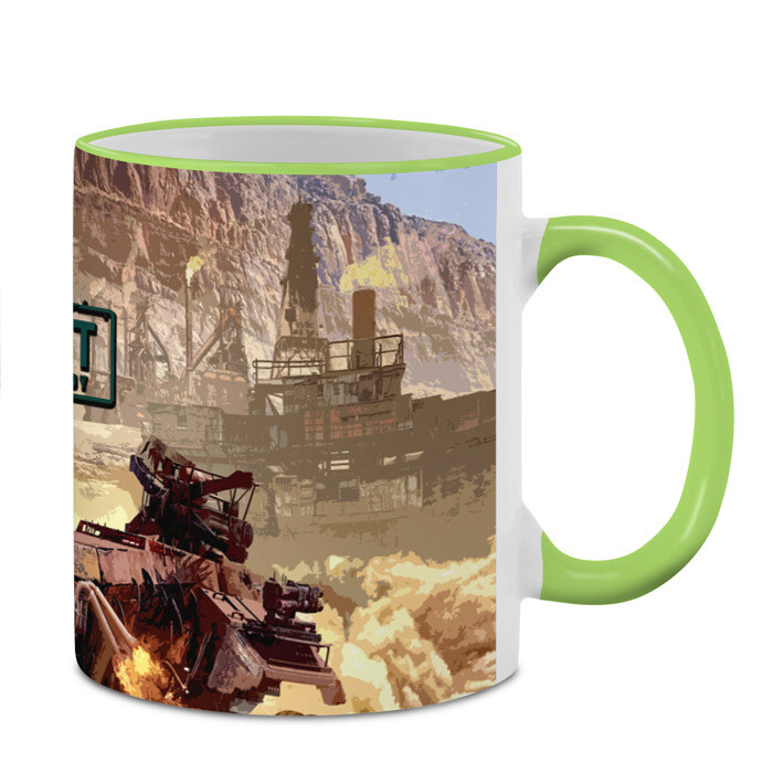Кружка с принтом, который наносится по всей внешней поверхности, кроме прямоугольника у ручки. У кружки цветной ободок сверху и ручка. Можно заказать со своим дизайном.