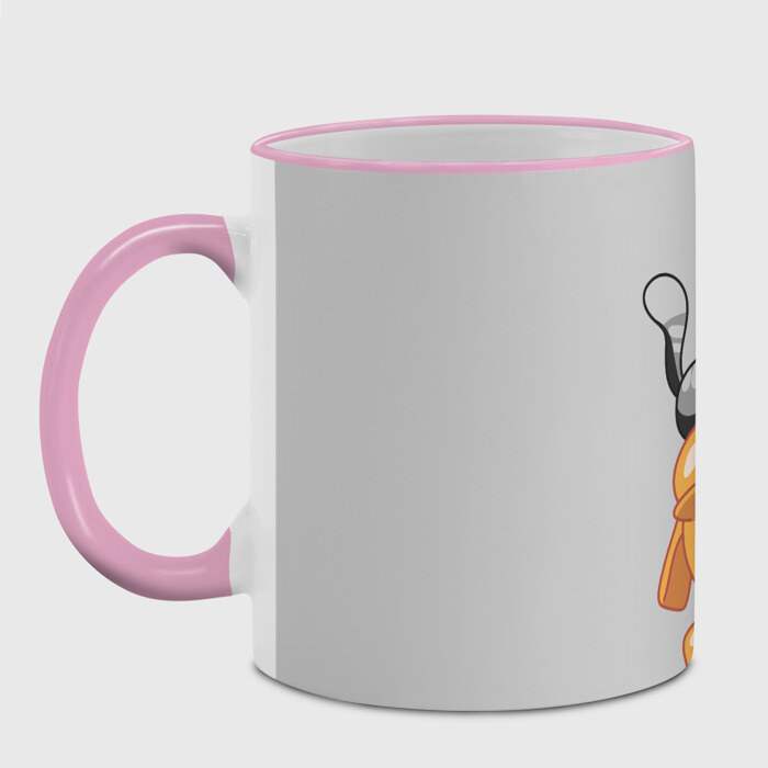 Кружка с принтом, который наносится по всей внешней поверхности, кроме прямоугольника у ручки. У кружки цветной ободок сверху и ручка. Можно заказать со своим дизайном.