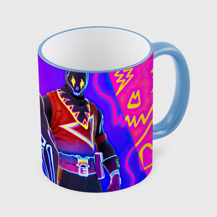 Кружка с принтом, который наносится по всей внешней поверхности, кроме прямоугольника у ручки. У кружки цветной ободок сверху и ручка. Можно заказать со своим дизайном.