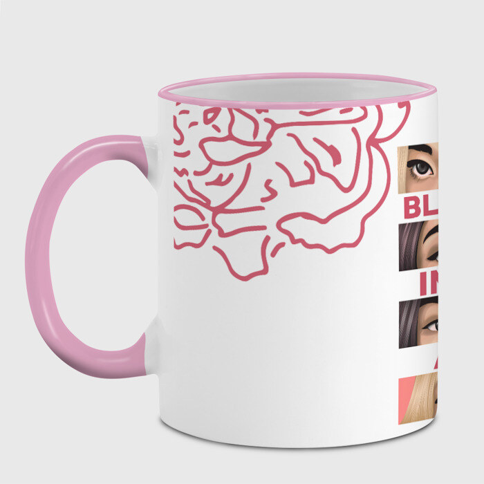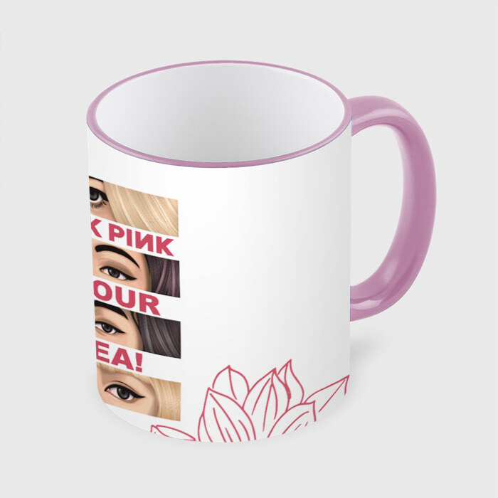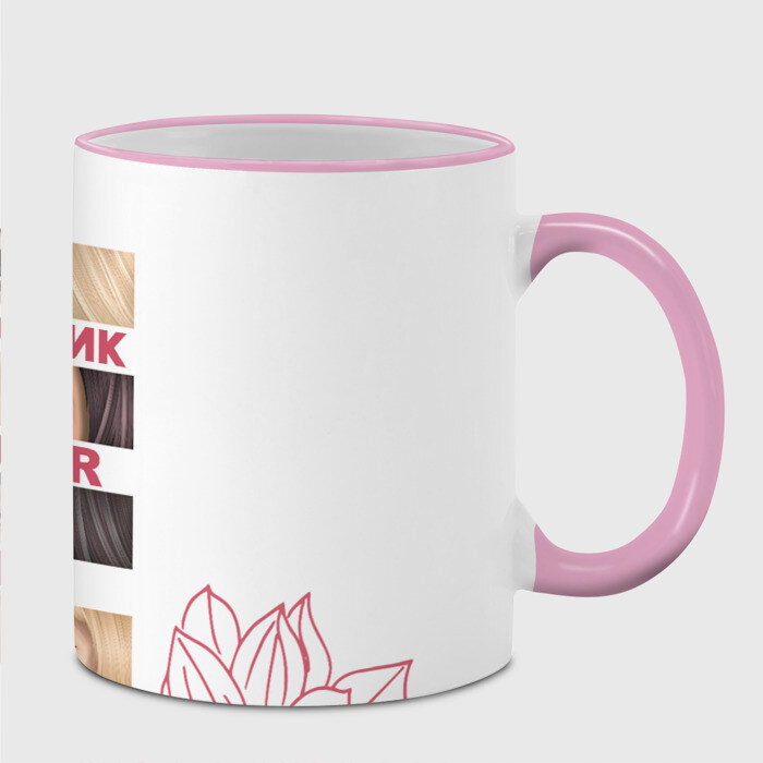 Кружка с принтом, который наносится по всей внешней поверхности, кроме прямоугольника у ручки. У кружки цветной ободок сверху и ручка. Можно заказать со своим дизайном.